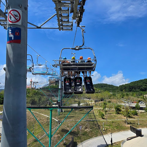 케이블카를 타고 산 위로 올라가는 동안 경치가 정말 아름다웠고, 내려오는 길은 스릴 넘치고 재미있었습니다. 멈출 수가 없어서 다시 하고 싶었어요! 🎢