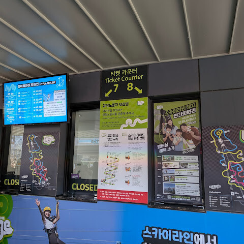 이용 순서: 먼저 티켓을 교환하고 헬멧을 받은 후, 케이블카 탑승 줄에 서서 탑승 후 내려오시면 됩니다.