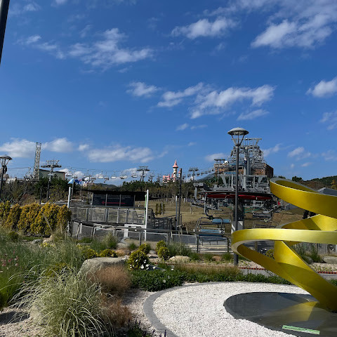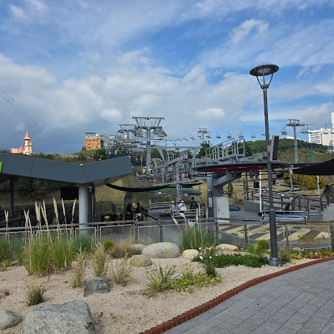 티켓의 QR 코드를 스캔하면 직원이 줄을 서서 케이블카를 기다릴 수 있도록 안내해 드립니다. 차례가 되면, 두 명뿐이라면 직원이 2번과 3번 지점에서 바닥에 서 있으라고 할 겁니다. 그런 다음 케이블카 의자가 올 때까지 기다렸다가 산 정상까지 쭉 앉아 있으면 됩니다. 산 정상에 거의 다 왔을 때 오른쪽 카메라가 자동으로 사진을 찍습니다. 그런 다음 케이블카에서 내려 첫 번째 슬라이드(오른쪽 줄)를 타기 위해 줄을 서세요. 그런 다음 직원이 작동 방법을 간략하게 알려줄 것입니다. 간단히 설명하자면, 핸들을 잡고 아래로 당겨 브레이크를 밟은 후, 천천히 앞으로 밀면 자동으로 앞으로 미끄러져 내려갑니다. 세 번 연습하면 도로에 나설 수 있습니다. 경사가 그렇게 가파르지 않아서 산들바람을 따라가는 재미가 있을 것 같습니다. 중간에 사진 찍을 수 있는 곳이 있습니다. 눈에 띄지 않도록 주의하세요. 아, 10월 20일은 맑았지만 조금 추워서 가벼운 다운 재킷이 필요했습니다.