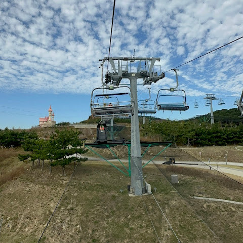 타고올라가서 루지타고 내려오며누되는데 코스도 4개나 되고 내려올때 바다보이는거도 좋았습니다