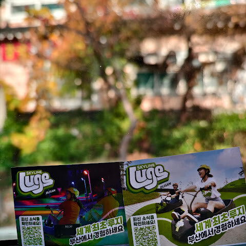 롯데월드 놀이공원 옆에 위치한 이곳은 부산에서 꼭 가봐야 할 곳입니다. 티켓을 구매한 후 헬멧 사이즈를 선택하고 착용하세요. 케이블카를 타고 올라가고 루지를 타고 내려오는 코스가 있습니다. 사람이 적고 줄이 짧은 평일 낮에 방문하는 것을 추천합니다. KKday 티켓은 최대 4회 탑승 가능합니다. 1층에는 케이블카와 루지를 타고 찍은 기념품과 사진이 있으니 마음에 드는 것을 구매하세요.