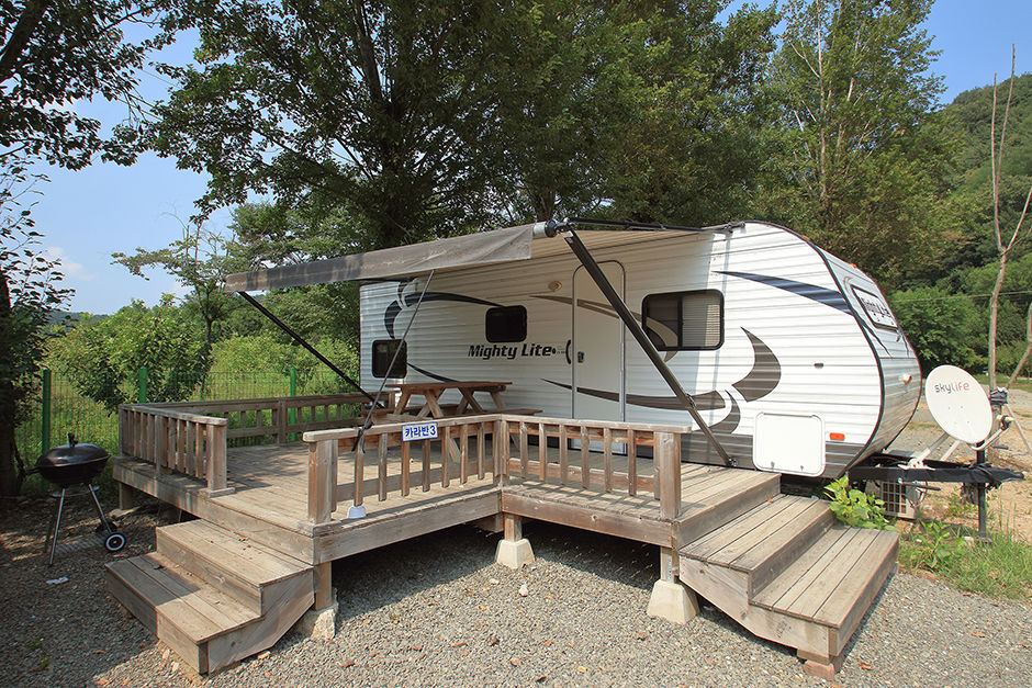 캠핑홀리데이 성주오토캠핑장은 경북 성주군 수륜면에 자리했다. 성주군청을 기점으로 참별로, 가야로, 동강한강로를 차례로 거치면 닿는다. 도착까지 걸리는 시간은 20분 안팎이다. 캠핑장이 고즈넉한 숲속에 위치한 덕분에 숲이 주는 싱그러움을 오롯이 체감할 수 있다. 게다가 곳곳에 식재한 수목이 시원한 그늘을 만들어줘 한여름의 캠핑도 무리가 없다. 캠핑장에는 일반 야영장 54면과 카라반 3대를 마련했다. 일반 야영장은 가로 8m 세로 6m의 데크가 4면, 가로 9m 세로 7m의 파쇄석이 51면이다. 화로, 전기 사용이 가능하며, 트레일러와 카라반 동반 입장도 가능하다. 카라반 3대 내부에는 침대, 냉난방기, TV, 화장실, 샤워실이 있다. 관리소에서는 텐트, 릴선, 화로대, 난방기구, 식기, 침낭을 빌려준다. 예약은 전화로 가능하다.