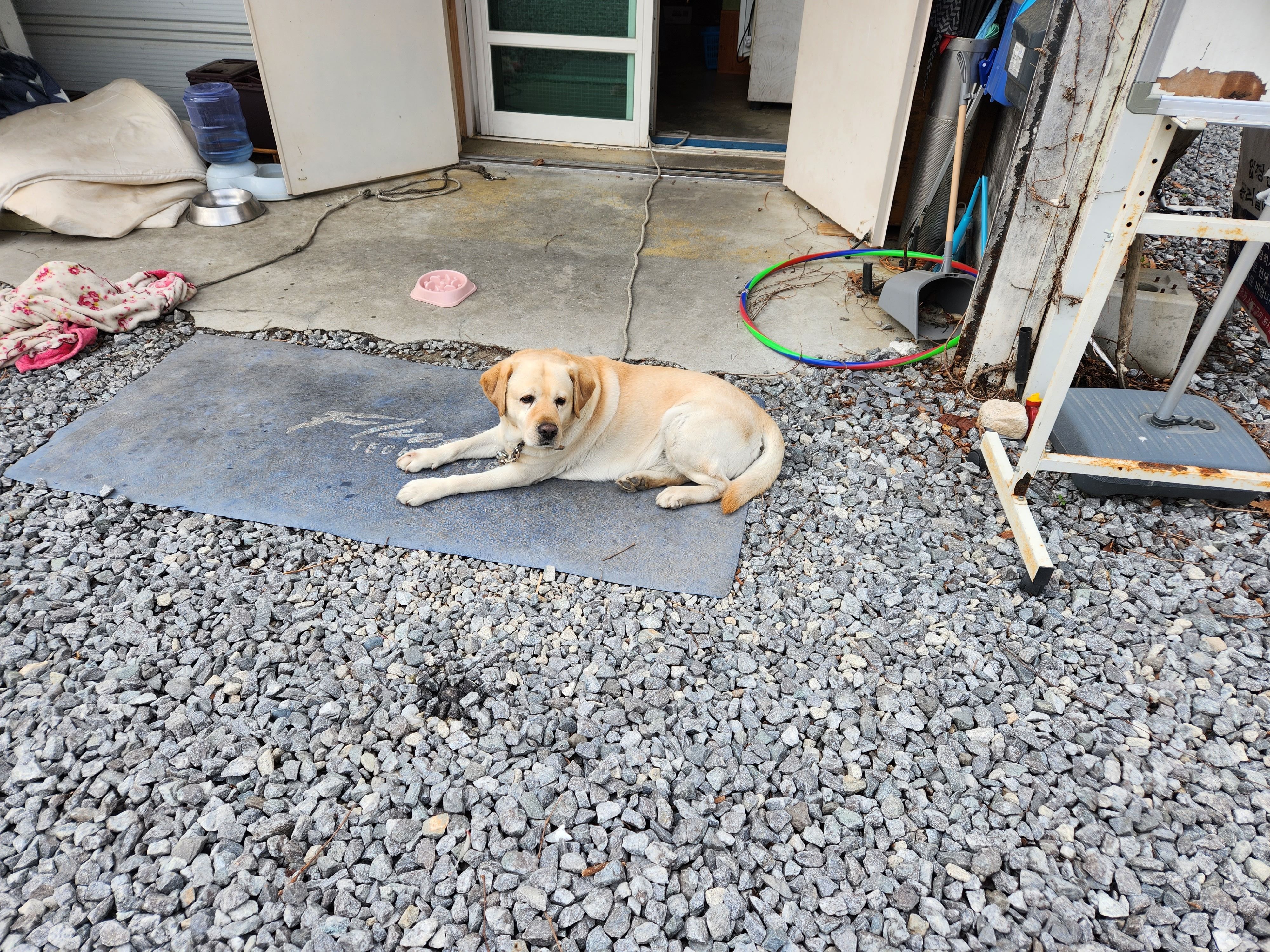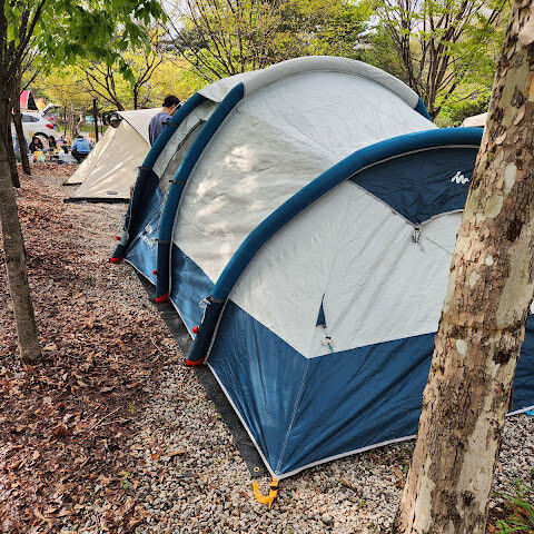 파쇄석이 캠핑장 전체에 깔려 있는데, 고르지 못해서 발목/발이 너~~무 아파요 ㅠㅠ 다른 캠퍼들/차량 이동 시에도 너무 시끄럽고.. 사이트 구분을 위해 있는 듯한 나무는, 그늘 자리를 만들어 주니 좋긴 한데.. 애매하게 자리 잡아서 차량 이동이나 텐트 자리 잡기 불편.. 캠장 개가 귀엽고 순하긴 한데, 개가 자리 잡은 매점 근처가 개화장실.. 냄새는 둘째 치고, 슬리퍼 신고 똥 밟..ㅡㅡ