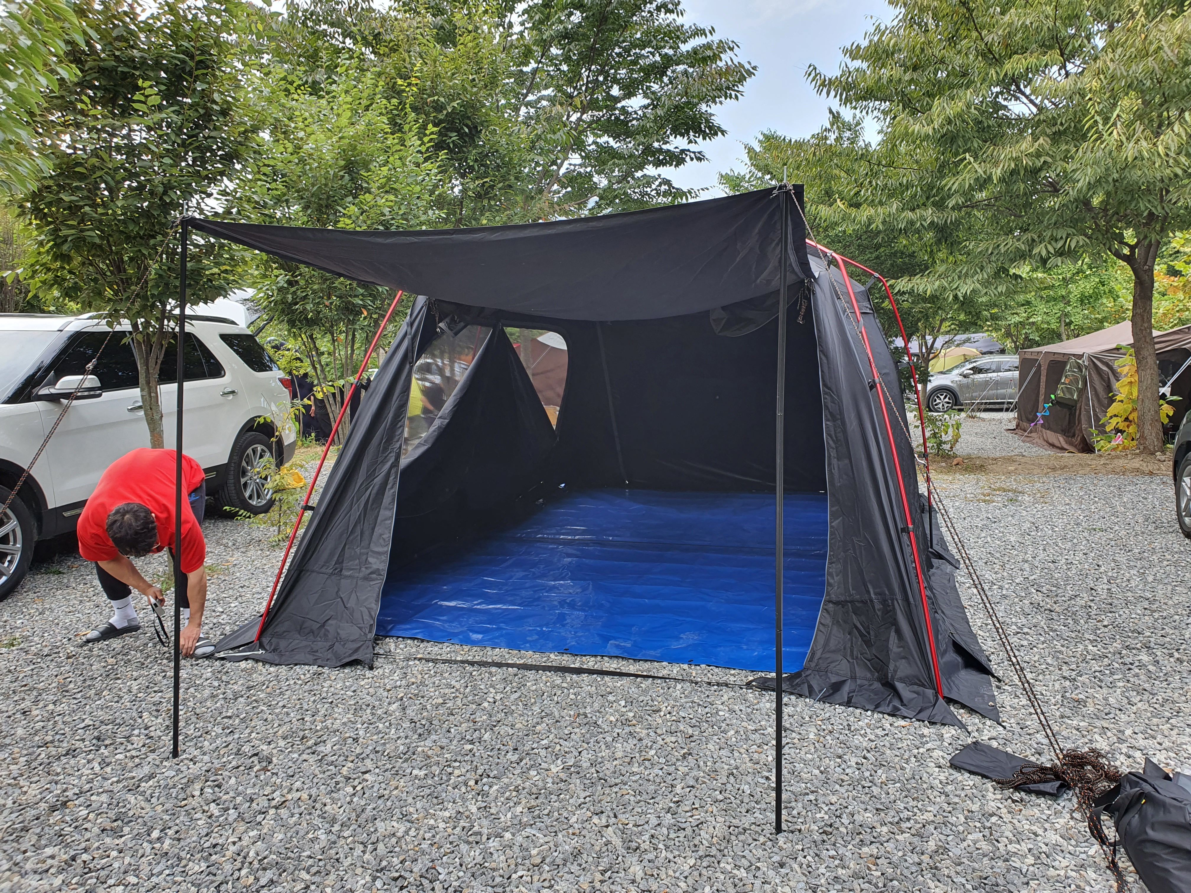 들어가는날 비소식에 10시 부터 입실 가능하게 해주시고 철수하는날 갑작스런 눈,비, 우박이 내려 퇴실도 3시로 미뤄 주셔서 여유롭게 걷었네요