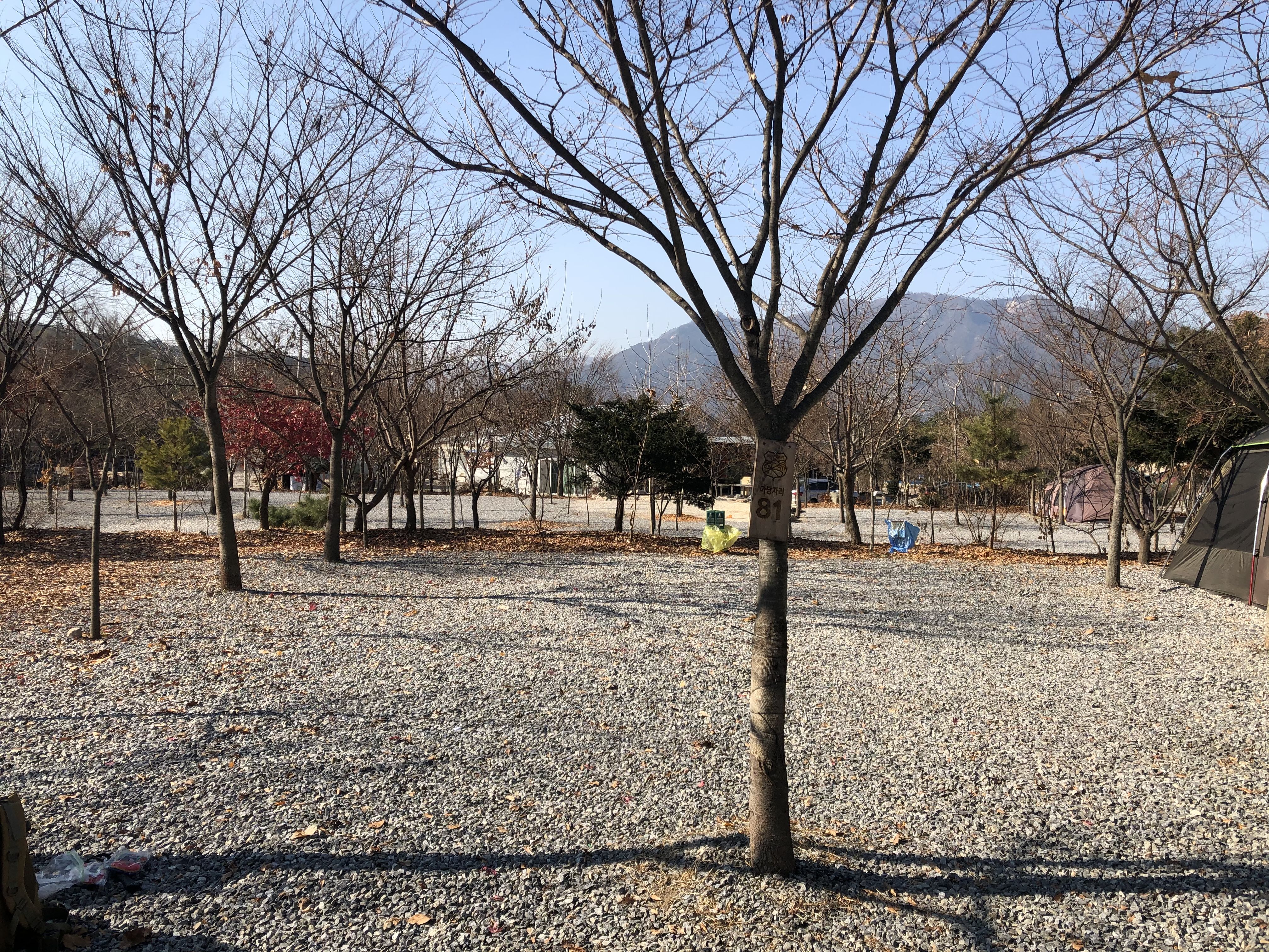 오픈한지 8년여 된 것으로 알고 있고 나무들도 그 세월만큼 잘 자라 그늘이 부족함이 없습니다. 사이트마다 심어진 나무의 가을 단풍이 예쁘네요. 화장실에 휴지 비치를 안해주시는건 좀 불편해요.