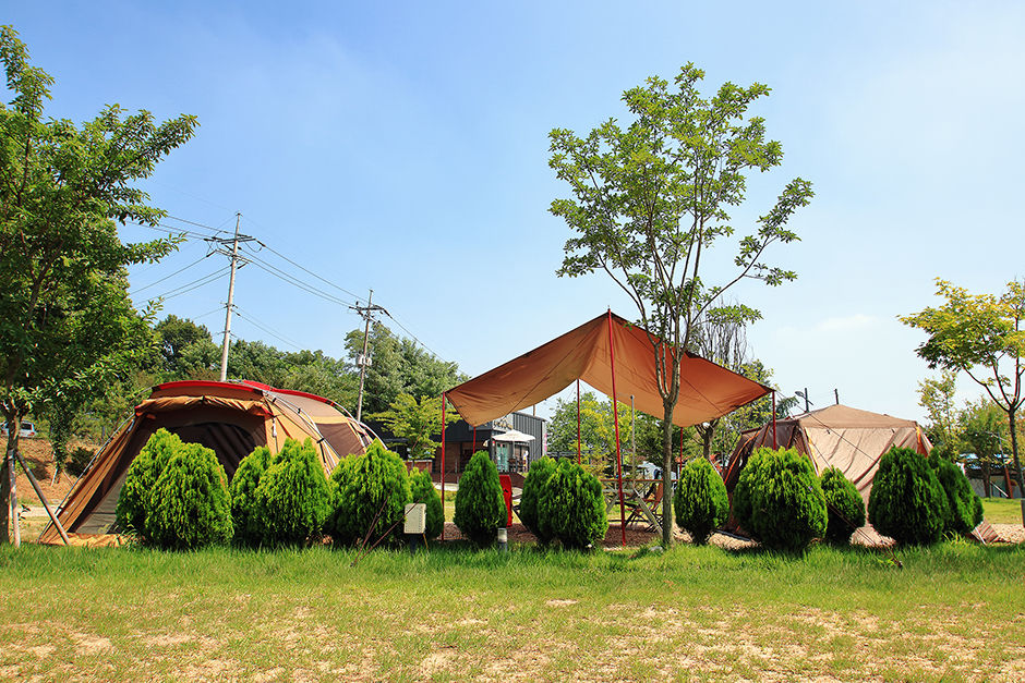 아트캠핑빌리지는 충남 논산시 상월면에 위치해 있다. 논산시청을 기점으로 시민로와 백일헌로를 거치면 나오는데 도착까지 소요시간은 20분 안팎이다. 이곳은 ‘문화 예술로 즐기는 특별한 캠핑’을 주제로 KT&G 상상마당에서 조성한 캠핑장이다. 모든 시설이 비교적 깔끔하고, 수영장, 카페, 쉼터 등 부대시설도 잘 설비되어 있다. 캠핑장은 시원하게 물을 뿜는 분수를 중심으로 자갈로 이뤄진 일반야영장 19면이 있는데 사이트 크기는 가로 5m 세로 7m다. 사계절 내내 평일 주말 할 것 없이 운영하고 있어 연중 캠퍼의 발길의 끊이지 않는다. 캠핑 트레일러와 개인 카라반 입장도 가능하며, 요금은 일반캠핑장 이용요금과 동일하다. 개수대와 화장실 등은 어느 사이트에 머물든 접근하기 쉽다. 캠핑장 인근에 논산명재고택, 개태사 등이 있어 연계관광이 용이하다. 김재성두부촌, 고구려황토참숯불갈비 등 맛집으로 소문난 음식점도 가깝다.