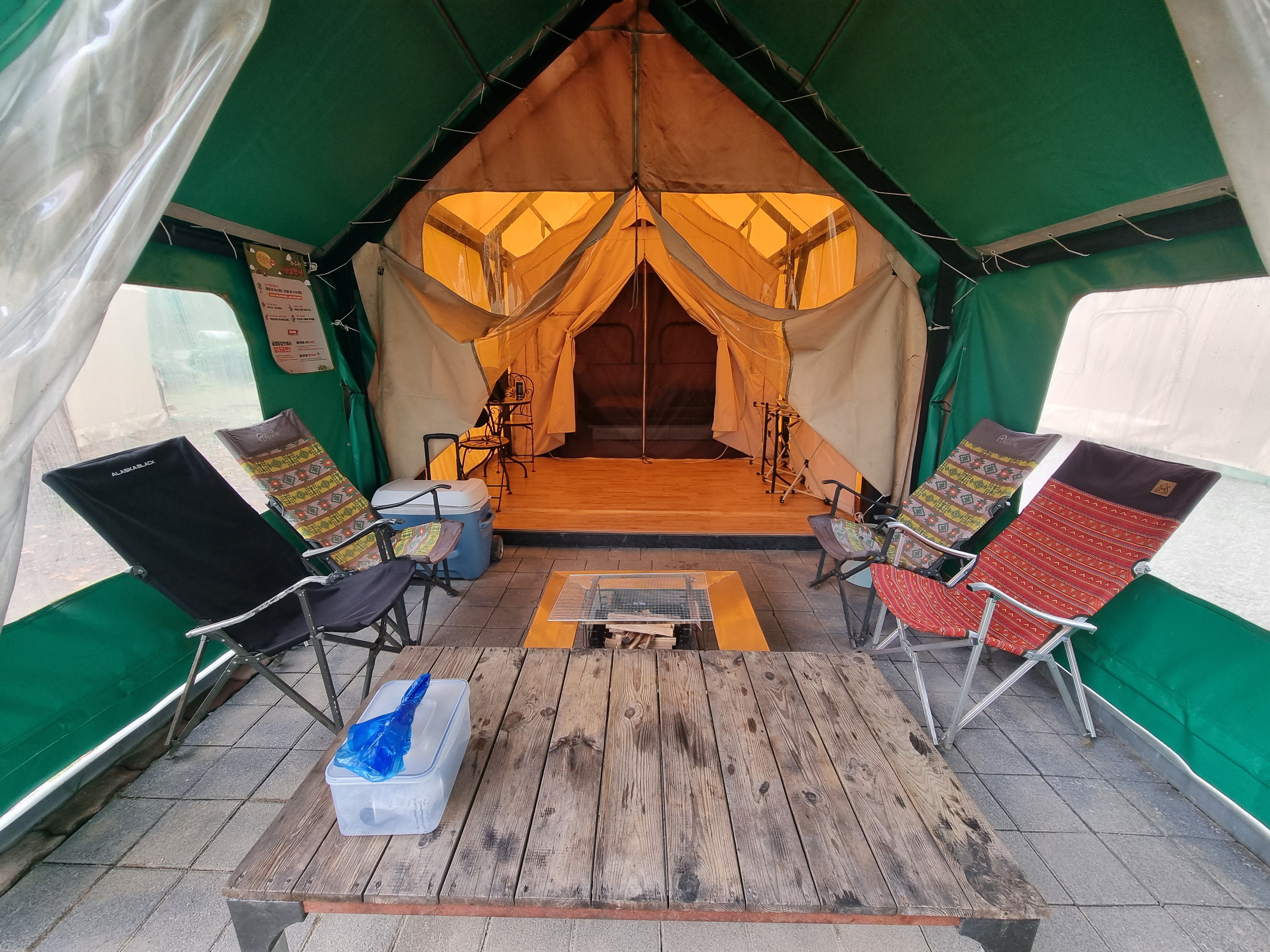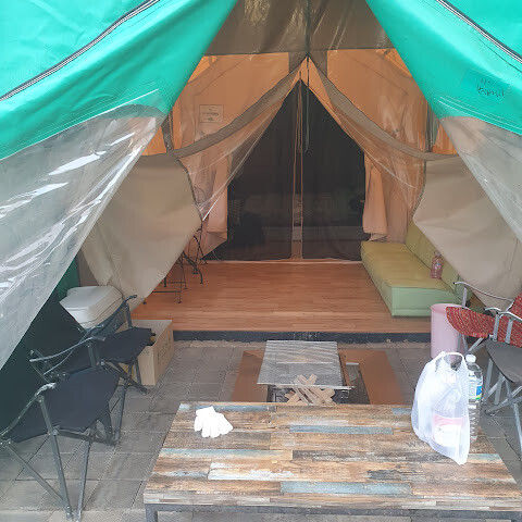 다만 2인 기준(최대 4인)인 글램핑 시설의 경우, 개인적으로 3인까지가 딱 적당할 것 같았어요. 4인이 쓰면 조금 좁을 것 같은 느낌..?