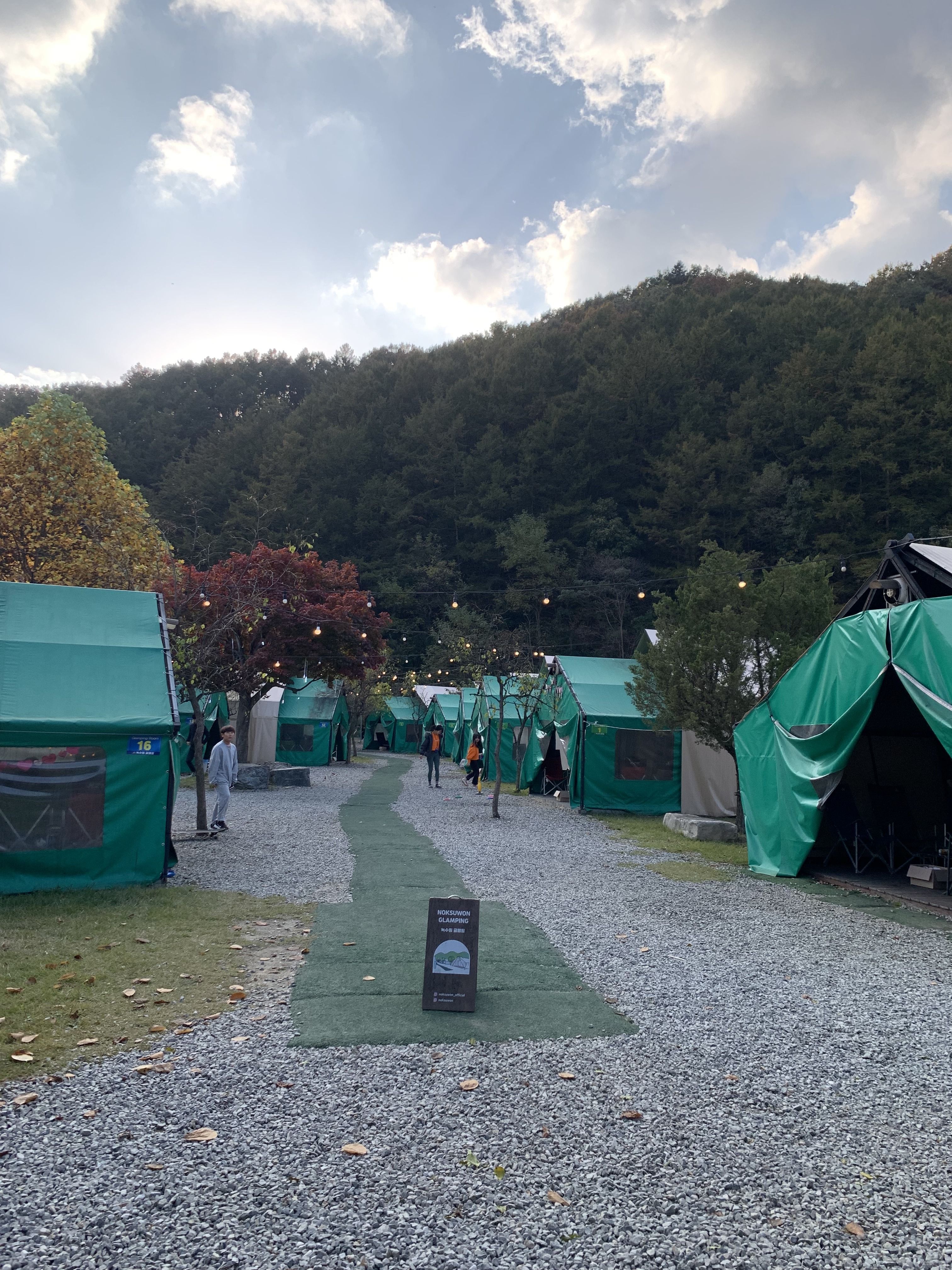 시냇가 자리로 예약했는데 물가 바로 앞이라 물멍하기 좋았어요. 다만 소리에 예민하신 분들은 잘 때도 물소리가 꽤 나니까 참고하세요~ 화장실이나 샤워실 같은 공용시설도 깨끗해서 좋았구요!