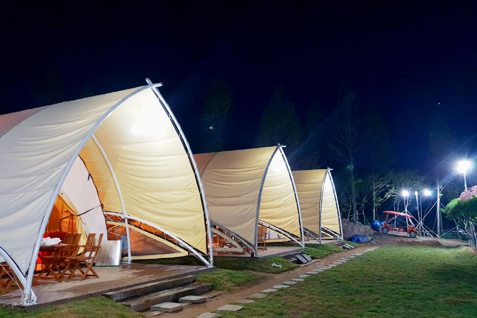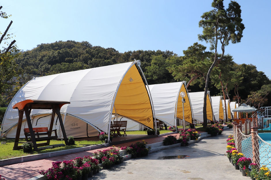 다온숲 캠핑장은 송학산과 조천천 인근에 위치한 덕분에 자연친화적인 캠핑을 만끽할 수 있다. 캠핑장에는 글램핑 17개 동을 운영하고 있으며, 객실 내부에는 침대, 에어컨, 소파, 화장실, 샤워장이 있고, 객실 밖 전용 데크에는 바비큐 시설 등을 배치했다. 이곳의 장점 가운데 하나는 부대시설을 알차게 마련했다는 것이다. 한여름의 무더위를 해소하기 안성맞춤인 수영장 3곳, 각종 음료를 판매하는 카페, 대규모 인원을 수용 가능한 무대 광장, 캠핑에 필요한 먹을거리 등을 판매하는 매점 등의 편의시설이 있다. 캠핑장과 가까운 거리에 베어트리파크, 고복저수지, 비암사 등의 관광지도 있어 연계 여행도 가능하다.