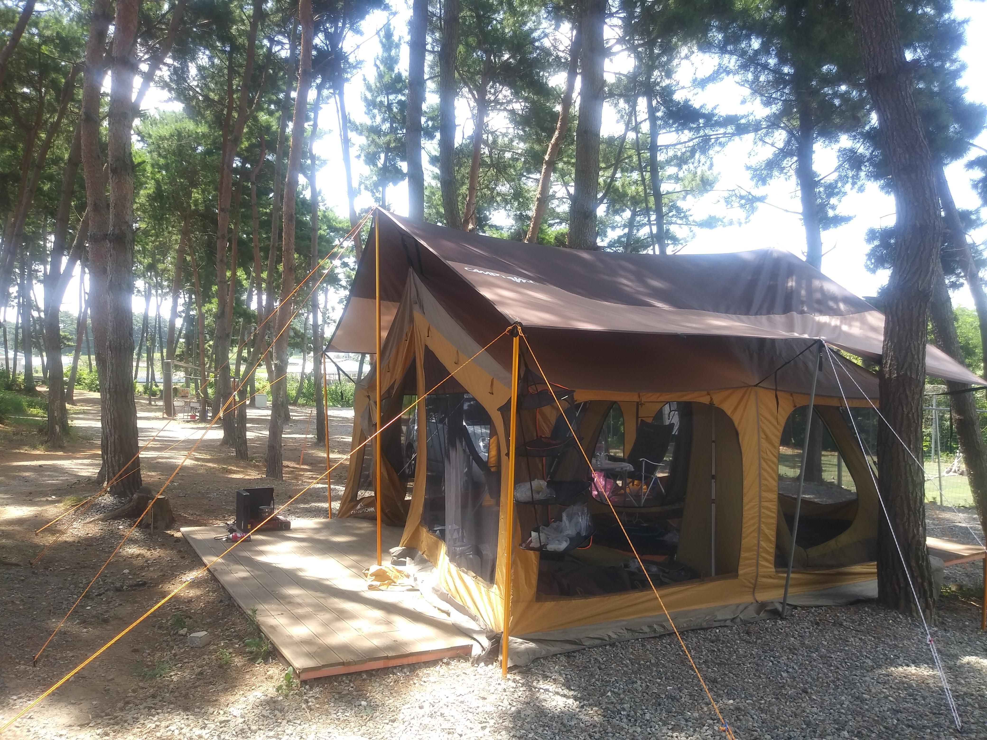 |  소나무숲이라 바람 솔솔 너무 시원했습니다. 데크도 넓고 사이트가 따닥따닥 안붙어 있어서 편했구요.
