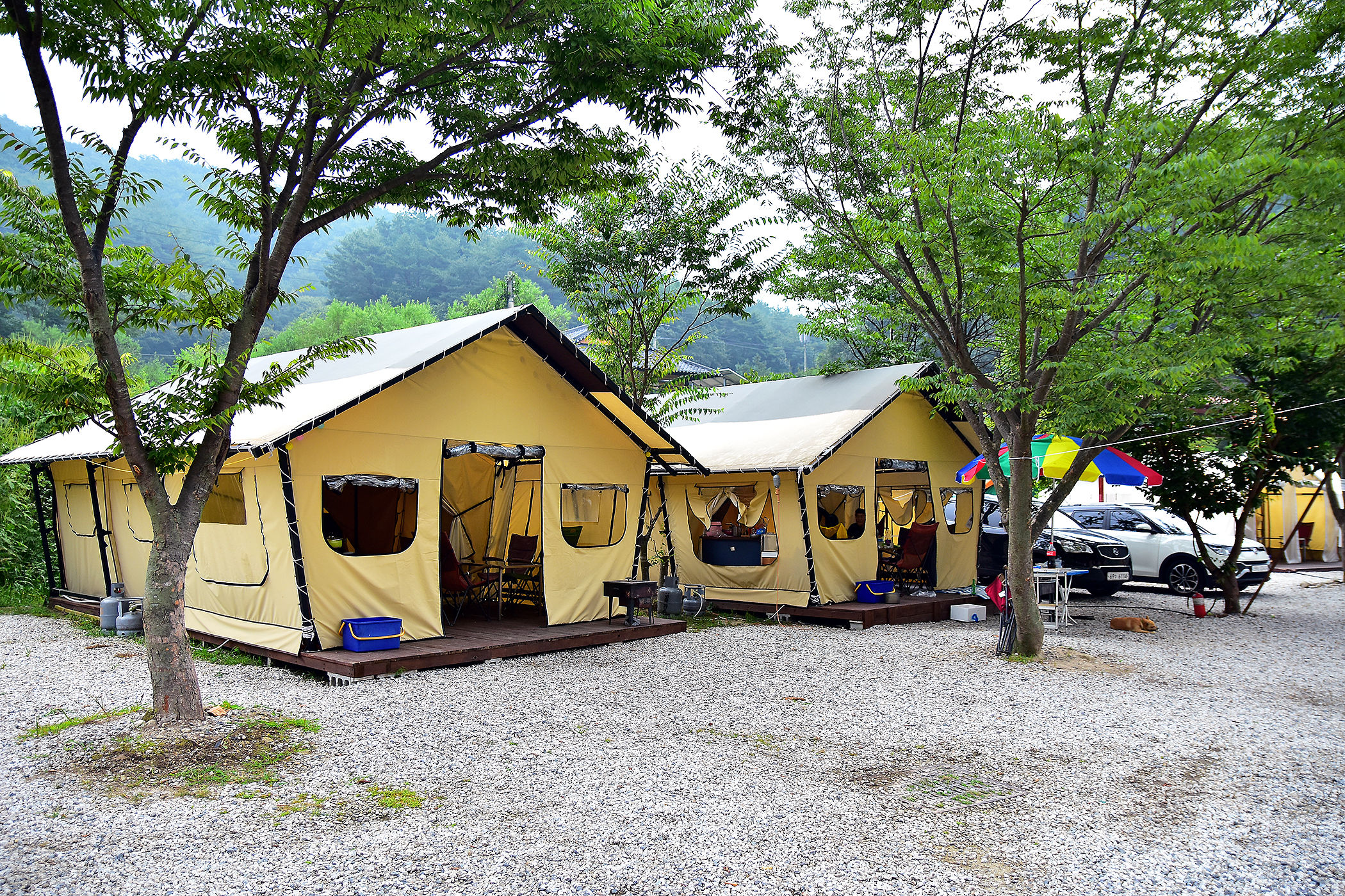 썬오브캠핑장은 미니 펜션과 2인용, 4인용 글램핑이 있는 곳으로 계곡이 단 1분 거리에 있다. 해발 250m에 위치한 이 계곡은 썬오브캠핑장 이용고객만 사용할 수 있을 정도로 이용객들 외에 다른 사람들은 눈에 보이지 않는다. 계곡 규모는 크지 않지만 계곡 내 파라솔을 펼쳐놓고 테이블 자리에서 발을 담그며 시원하게 앉아 쉴 수도 있고 수심이 얕아 어린이들이 놀기에 안성맞춤이다. 하지만 계곡 상류로 가다보면 수심이 깊은 곳도 있어 주의가 필요하다. 청정계곡에는 다양한 물고기가 많아 고기잡이도 즐겨볼 수 있다.