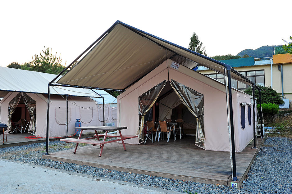 경남 고성의 아트앤체험 캠프장은 글램핑과 야영장이 함께 있는 캠핑장으로 사이트 앞까지 주차 할 수 있어 무거운 짐을 옮기는 수고로움을 덜어준다. 모두 파쇄석과 데크 사이트로 이루어진 캠핑장은 사이트 공간이 넓어 여유롭게 텐트를 설치할 수 있어 이웃과 편하게 지낼 수 있다.