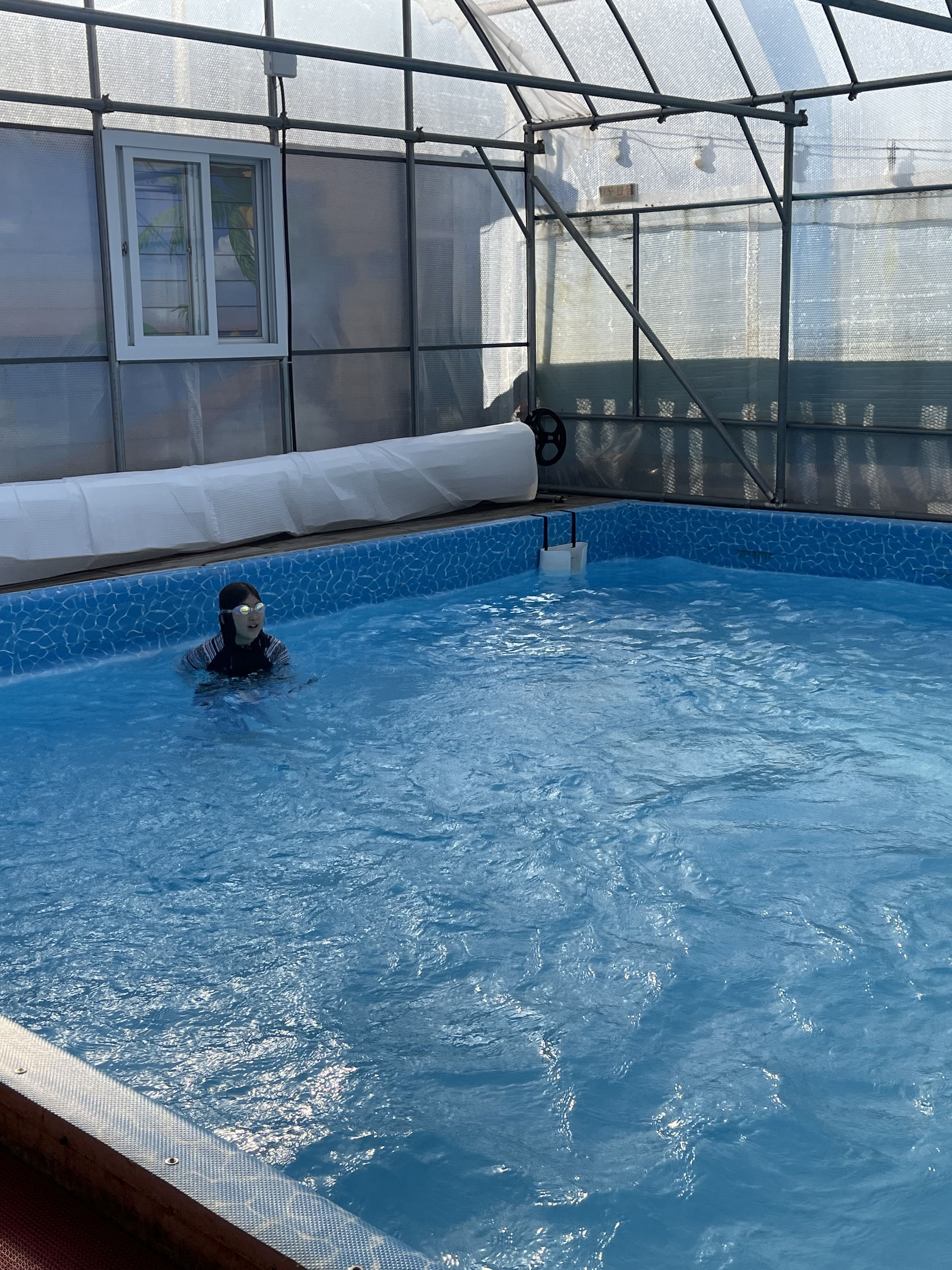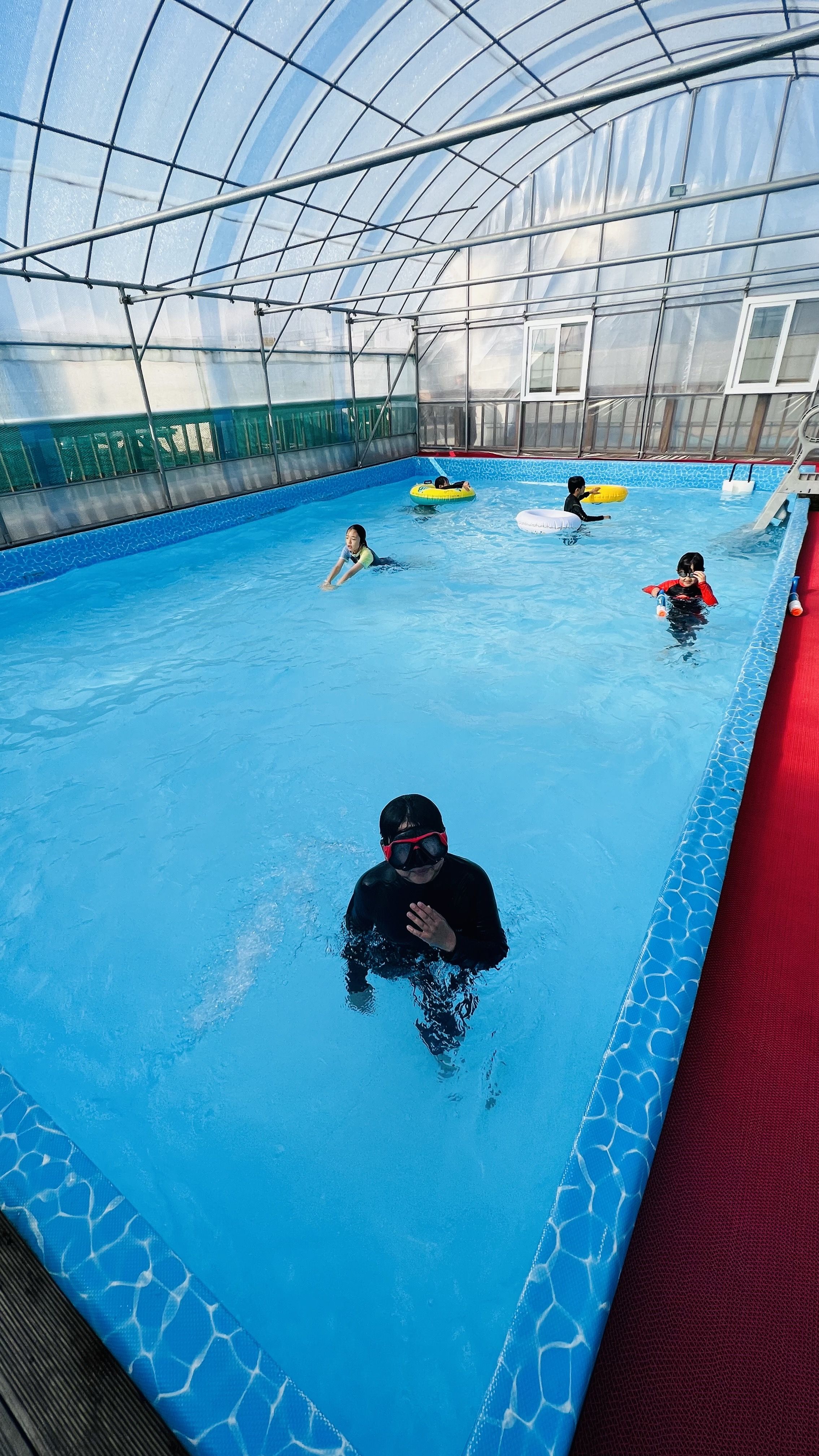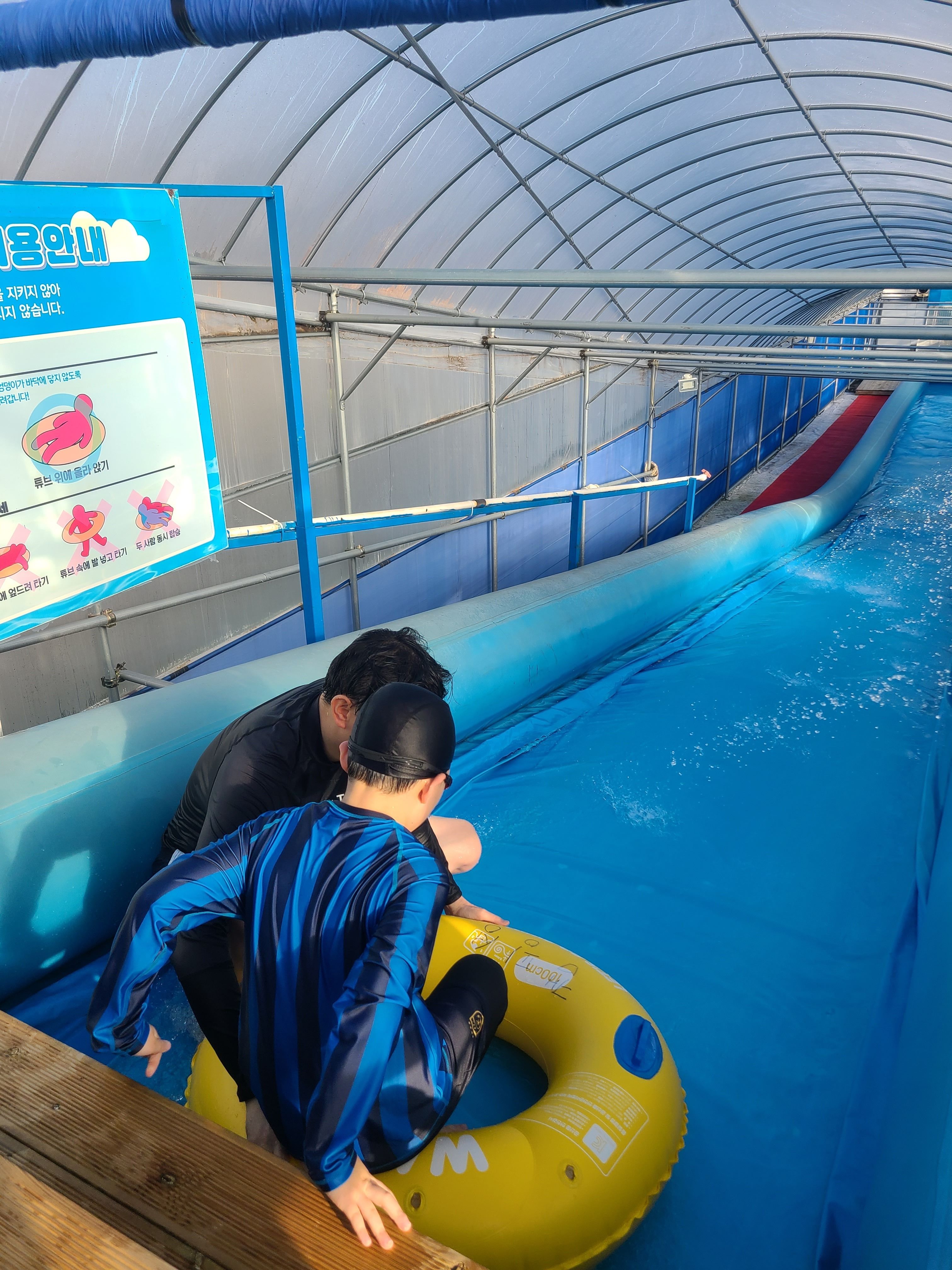 우리가 간 날이 참 추운 날이어서 걱정했는데 걱정이 무색하게도 수영장안과 물은 따뜻했습니다. 신나게 물놀이도 하고 워터슬라이드도 타고 깔깔거리며 신나게 놀았습니다.