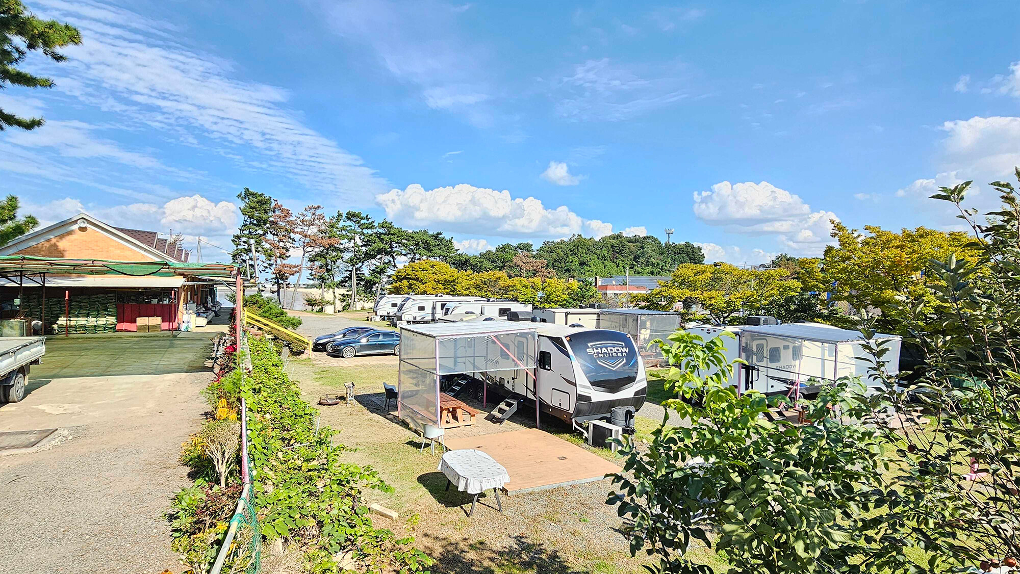 대부관광농원오캠핑은 대부도 맨 아래쪽 메추리섬 앞에 있다. 또 홀곳갯벌체험장이 바로 옆에 있어 갯벌체험을 하기에 아주 좋은 곳인데, 이곳은 관광농원으로 지정된 넓은 평야지대에 캠핑장을 조성해 놓았다. 그래서 아직은 나무가 적고 작아 그늘이 없다는 게 단점이지만, 양쪽으로 바다가 보이고 한발만 나서면 갯벌에 넓은 수영장과 과수원, 영농체험장등이 있어 어린이들과 수확체험 등을 해 볼 수 있어 좋다.