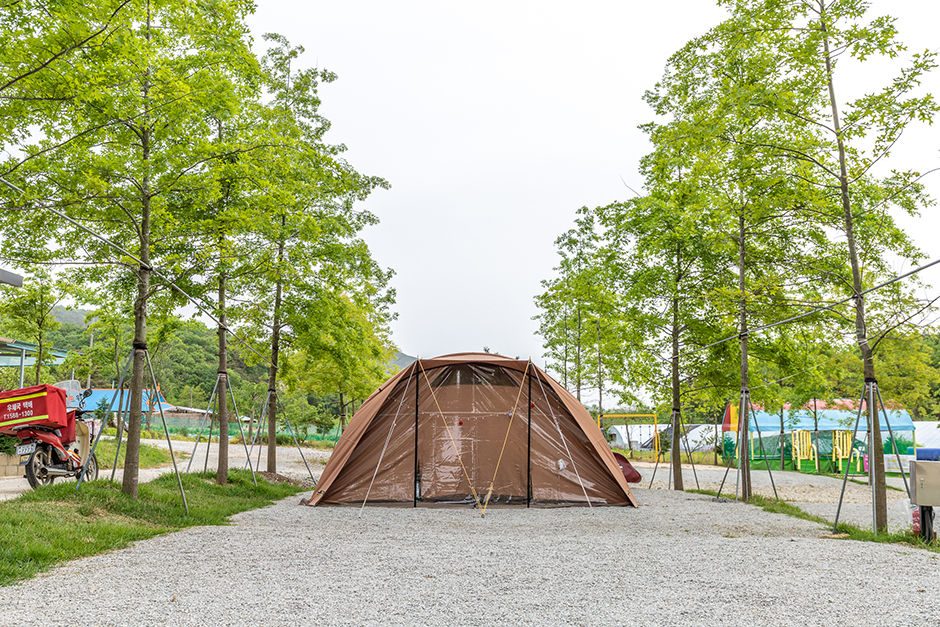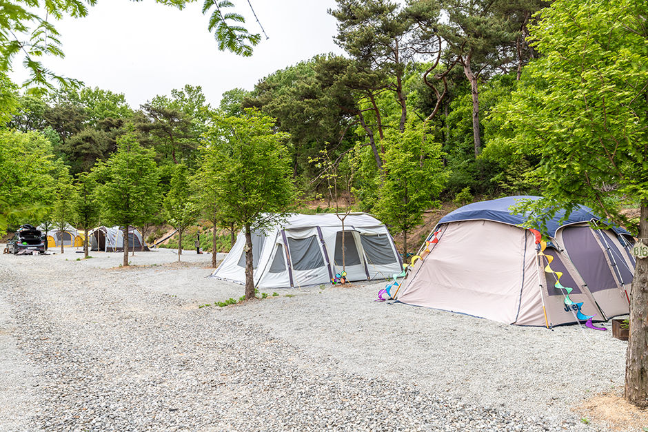 수덕 캠핑장은 충남 예산군 덕산면에 있다. 예산군청을 기점으로 21Km가량 떨어졌다. 자동차를 타고 예산로, 충서로, 윤봉길로 차례로 거치면 닿는다. 도착까지 걸리는 시간은 30분 안팎이다. 조붓한 시골길을 달리면 도착하는 이 캠핑장은 산으로 둘러싸였다. 이 덕택에 자연친화적인 요새에 머무는 듯한 착각에 빠진다. 캠핑장에는 일반 야영장 29면을 마련했다. 두 구역으로 나뉘는데, A구역은 면적이 넓고 관리동과 가깝다는 장점을 지녔다. B 구역은 상단에 위치했으며, 관리동과 멀지만 전망이 좋다. A구역의 사이트 크기는 가로 9m 세로 13m, B구역은 가로 7m 세로 9m이다. 바닥 형태는 두 구역 모두 파쇄석이다. 화장실과 샤워실은 남녀를 구분해 2곳이며, 개수대도 2곳 있다. 오랜 전통을 자랑하는 덕산온천, 천년고찰 수덕사 등 인근 관광 자원이 풍부해 연계 관광이 순조롭다.