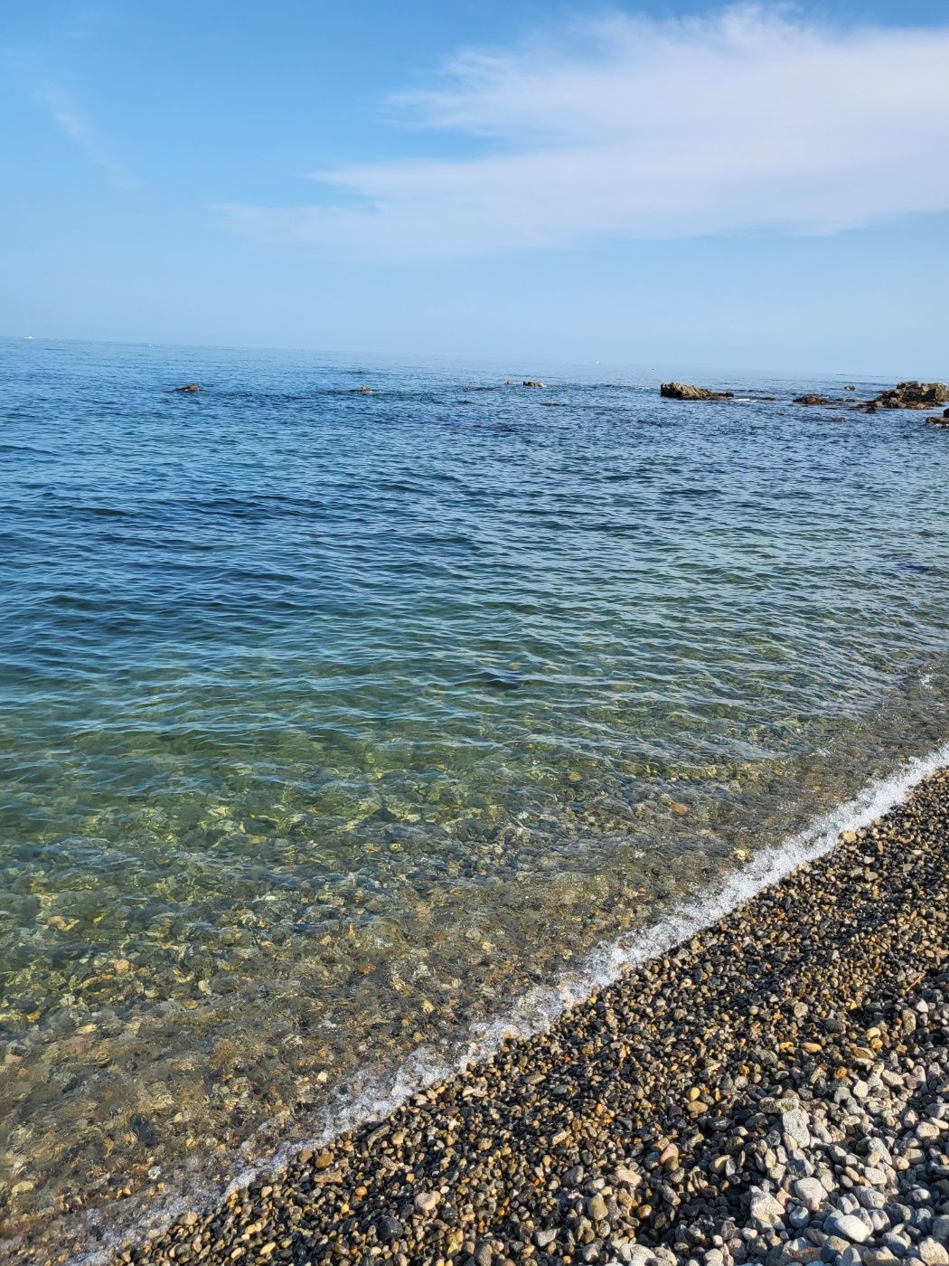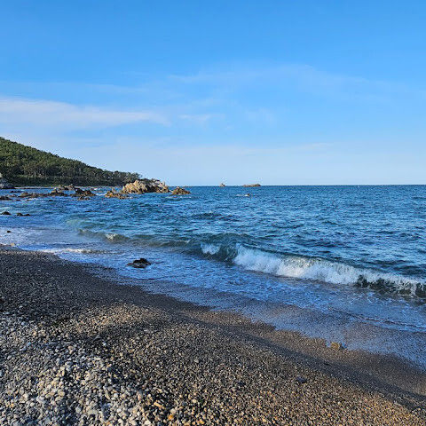 펜션 앞 몽돌해변에서 사람도 많이없어서 강쥐랑같이 프라이빗하게 물놀이도 할수있구요