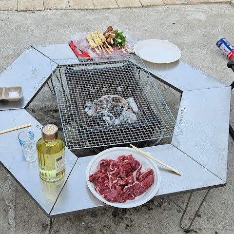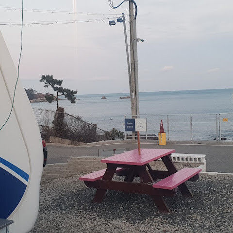 캠핑 좋아하는 사람들한테는 더할나위 없이 좋은 바베큐장 같습니다 ㅜㅜ 개별바베큐로 각 카라반마다 이렇게 분위기 있는 곳이 각각 있다니 ㅠㅠ 너무 좋았어요 동네도 너무 분위기 있고 바로 앞에 바다가 있어서 낚시족인 저희에게 또 최고의 숙소였네요 ㅎㅎ 하루 휴무 힐링하러 왔는데 너무 좋았습니다