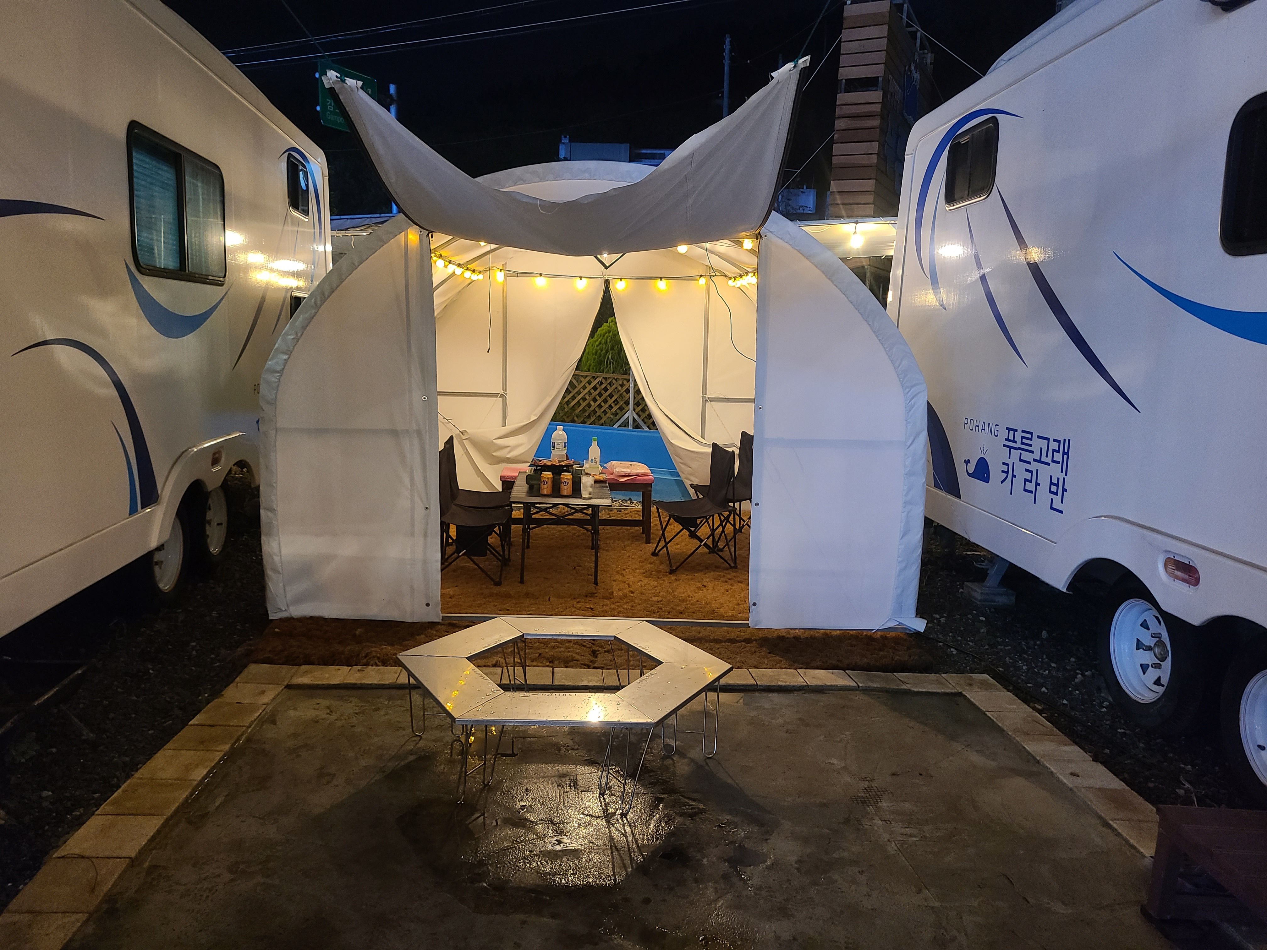 카라반은 처음 갔는데, 지인이 갔던데는 냄새도 나고 공용화장실 써야 해서 불편했다고 들었는데 여기는 전혀요!