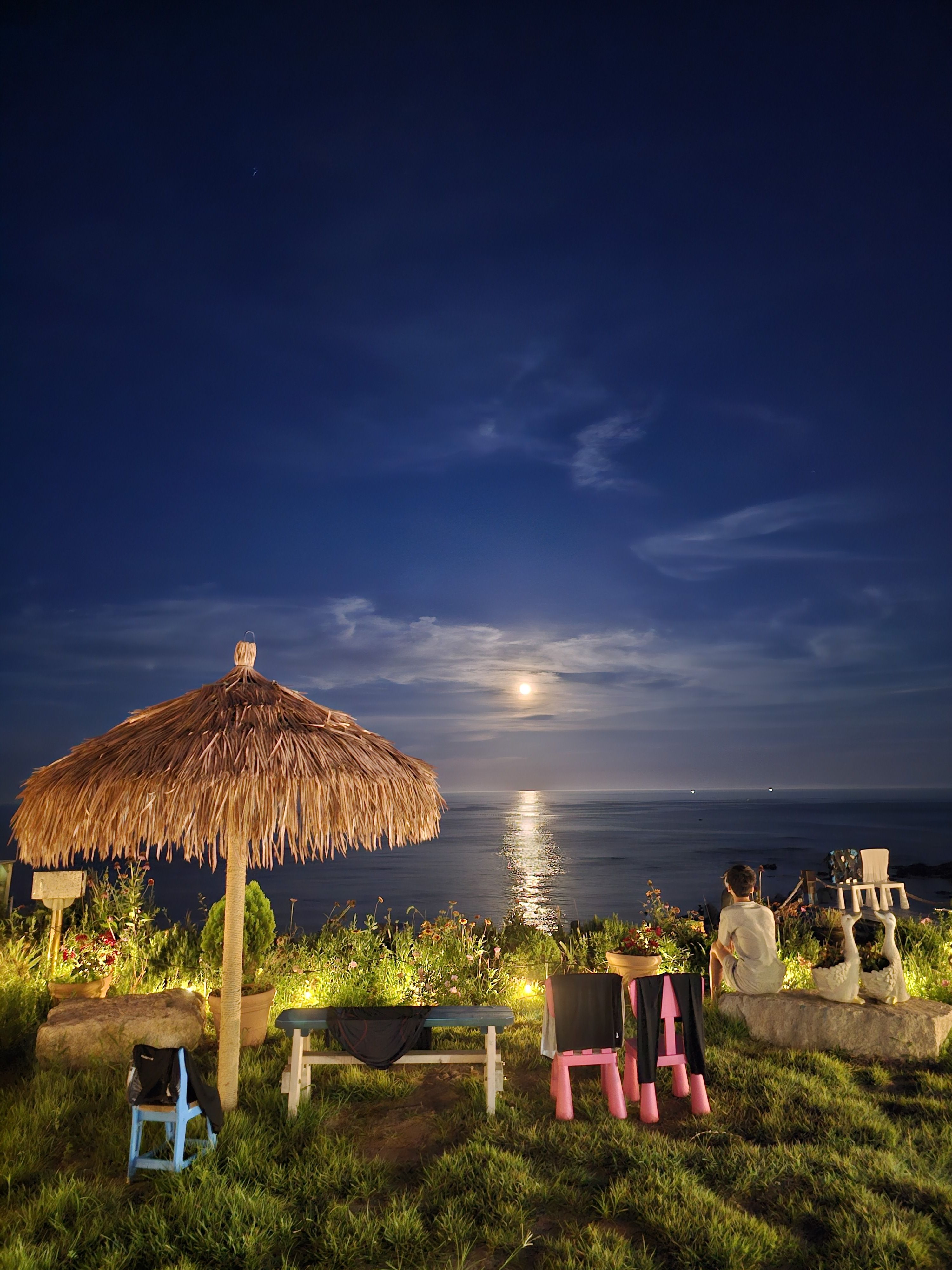조용하고 깨끗하고 진짜 너무좋네요 친절하신 사장님덕분에 편안하게 쉬다가갑니다 ㅎㅎ 오션뷰는 1번이 더 좋을듯해요! 2번도 나쁘진않지만용 ! 해뜨는것까지 봐서 너무 행복했어요🩵