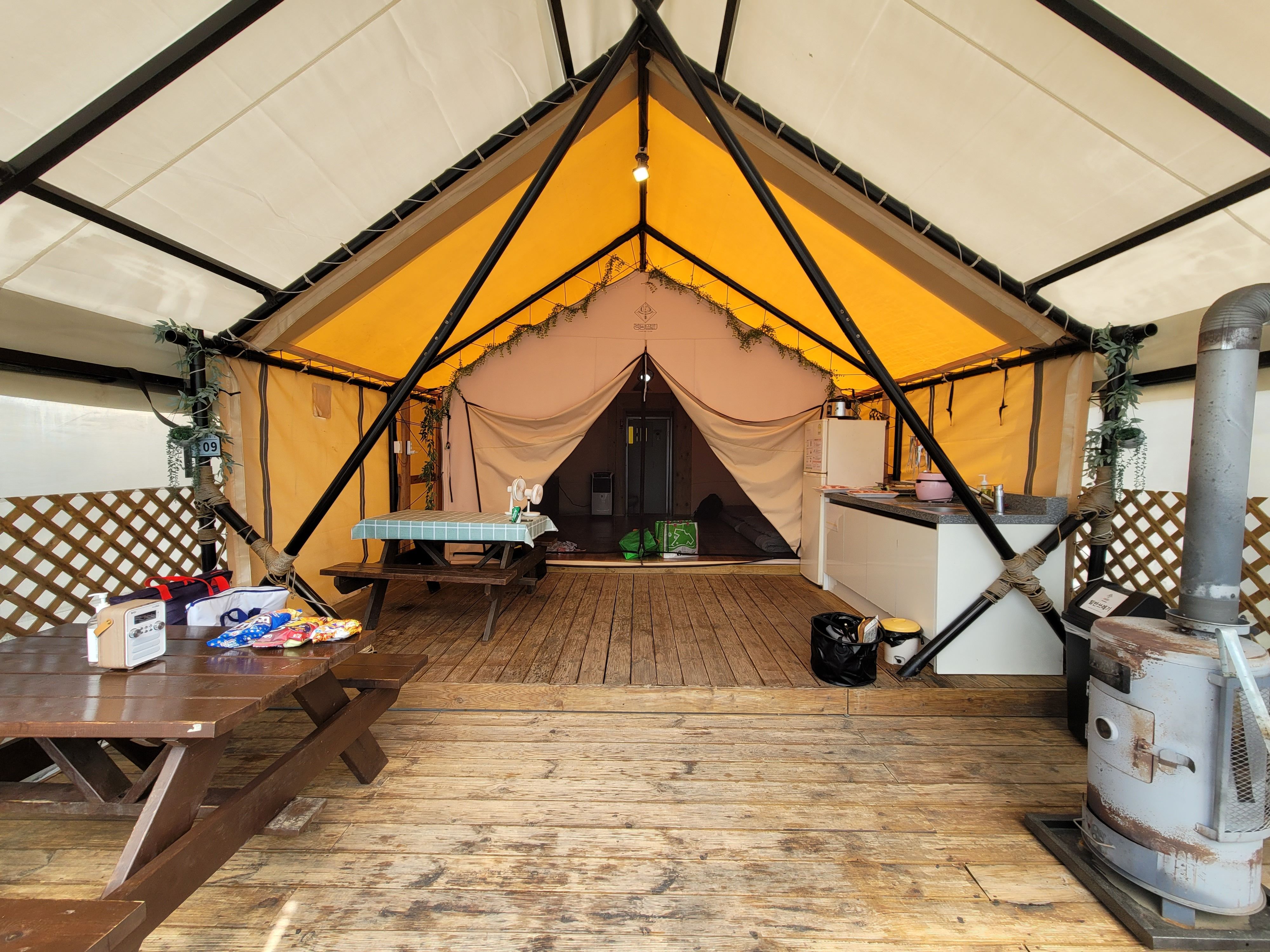 화장실이 내부에 있어서 편했습니다. 에어컨도 있고 온풍기도 있어서 밤에 추운데 온풍기 잘 이용했어요. 아기를 데리고 가서 방방이도 태워주고 바로 앞에가 바닷가라 아기 데리고 놀기에 너무 좋았습니다.