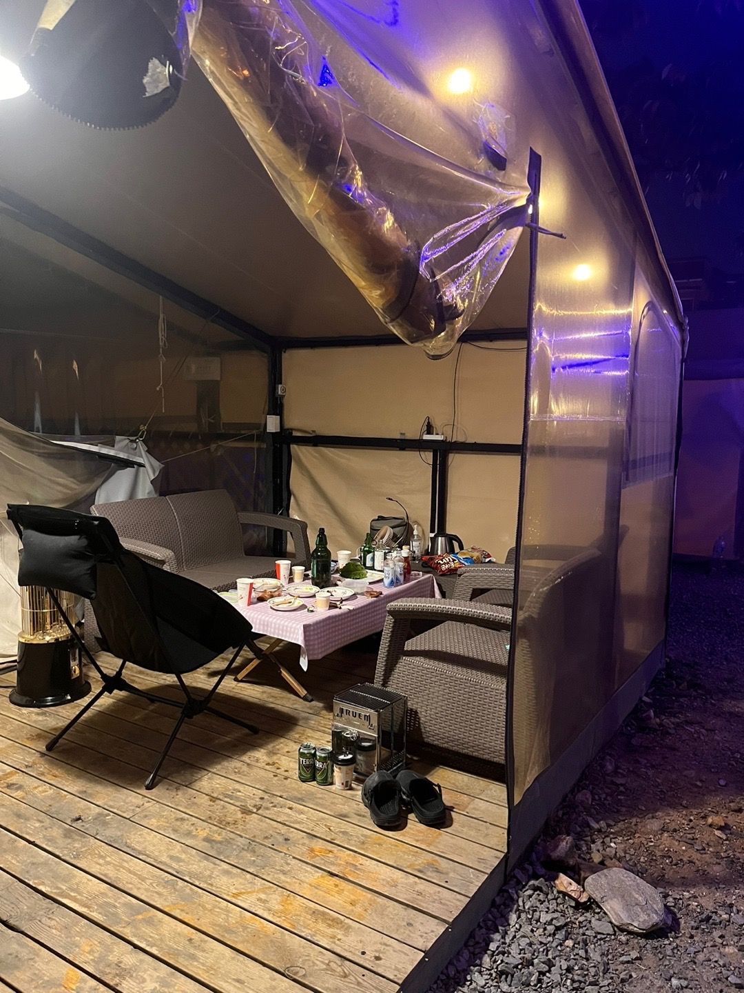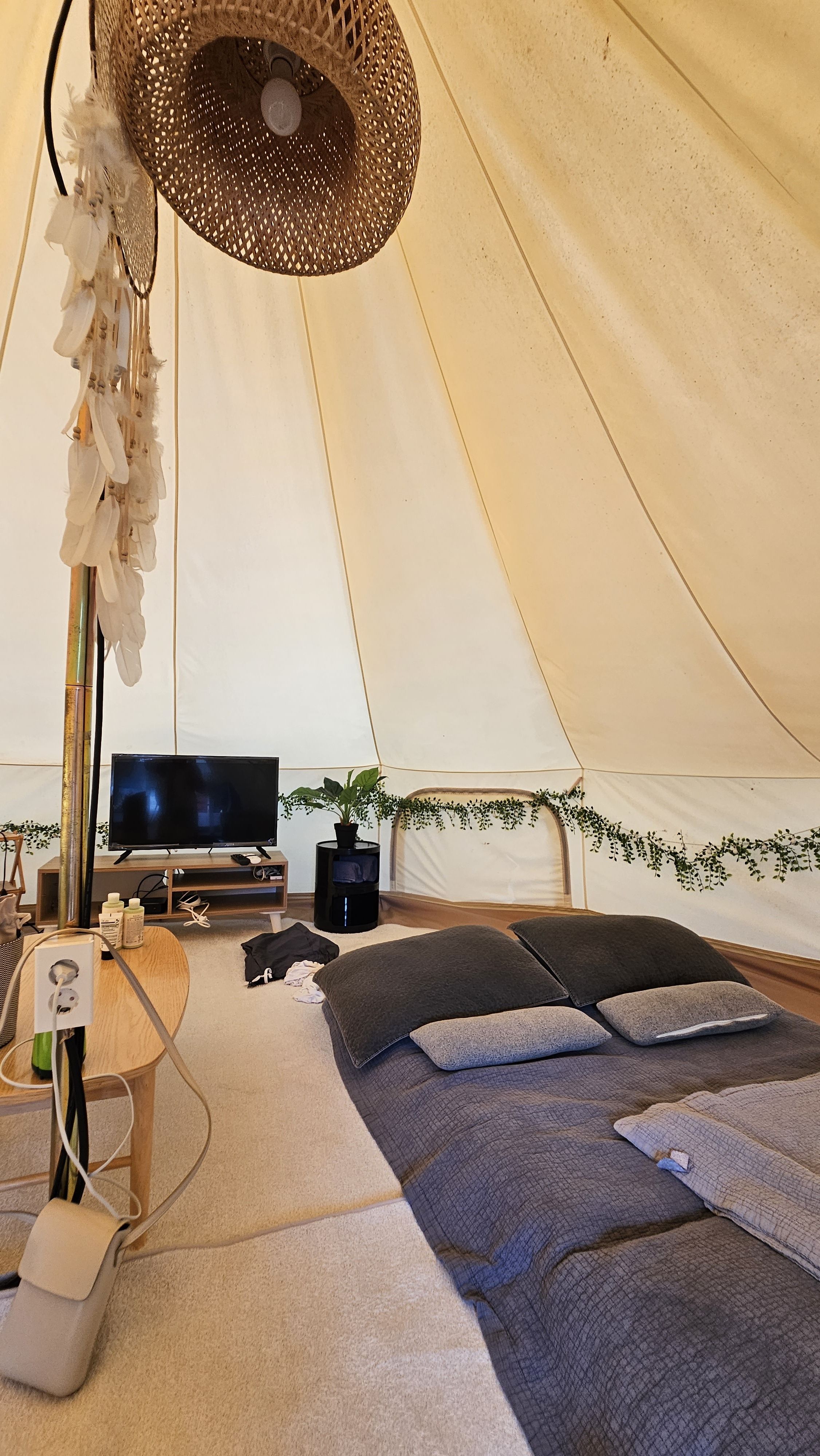 사장님들이 너무 친절해서 좋았어요 ! 바베큐도 분위가 좋고 감성 글램핑너무 좋아요. 침대도 2개라서 4명이서 충분히 잘수있었어요ㅎㅎ 분위기도 너무 좋고 조용해서 잘 쉬다가 갑니다 :) 다음에 또 방문 하고싶네요 !