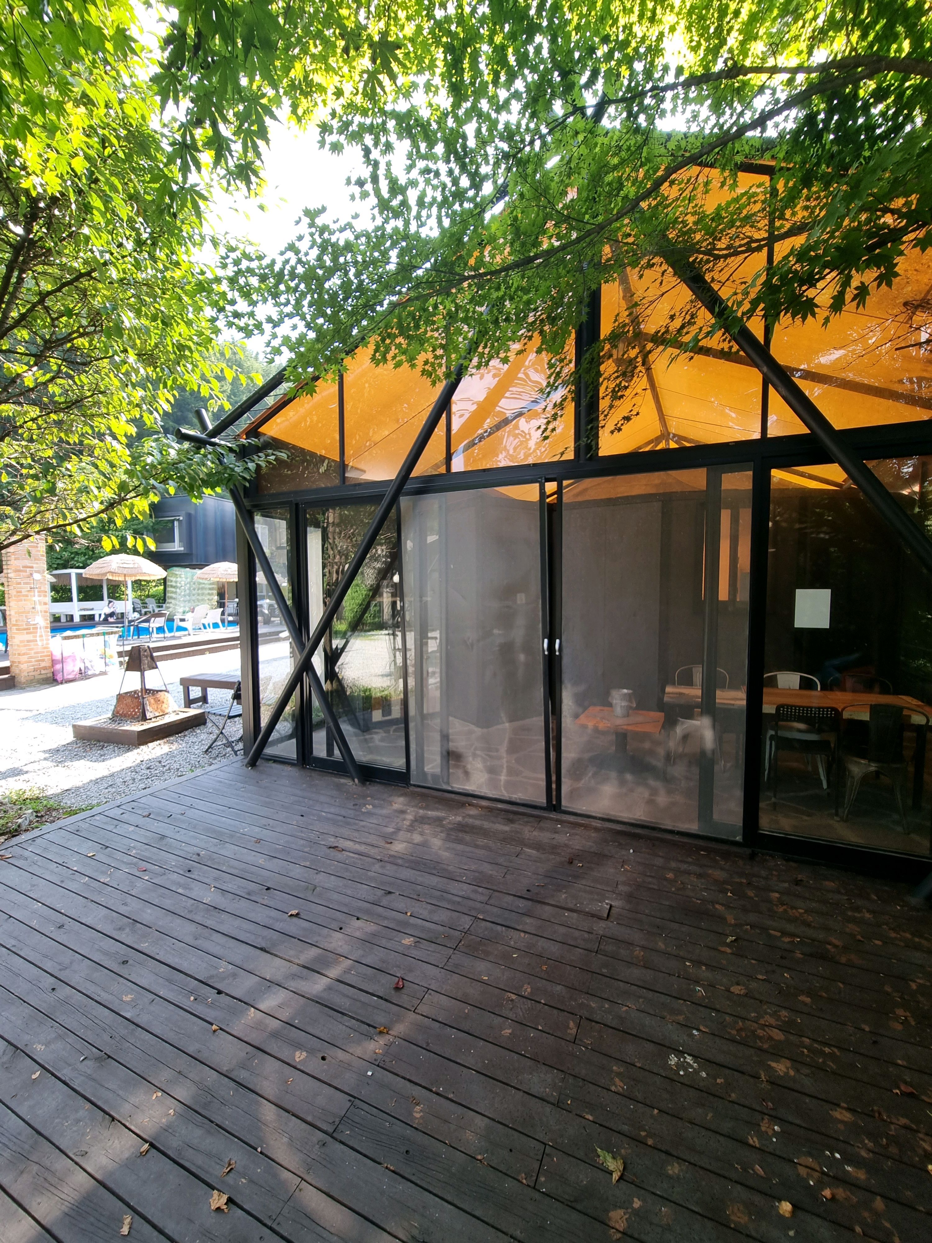 개인 화장실이 있어 좋았고 내부도 아주 깔끔했습니다! 그리고 개인 바베큐장은 방충망이 되어있어 벌레가 많이 달려드지 않았어요