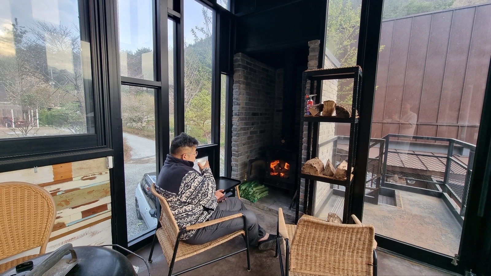 싸장님! 요기 숙소에 빔프로젝터가 있으면 더욱 더 감성 충만한 숙소가 될 것 같아요! 산(?)이라기 보다는 아무튼 깊숙한 곳에 있어 고립을 원하는 분들에게는 추천! 벌레가 매우 많은건 감안하셔야 합니다! 주변에 아무것도 없어서 장 볼 때는 충분히 넉넉하게! 사오셔야해요! 매점이 있으나 마트보다는 값이 높아요! 숙소 인테리어 이쁘고 주방도 잘 되어 있어서 뭐 해서 먹기 좋았어요! 간식 챙겨주셔서 아침에 잘 먹었답니당 아 온수는 일정 사용하면 히팅되는 시간이 걸려서 그 부분은 좀 불편했어요! 그 외는 쏘쏘하게 잘 있다가 왔습니다~