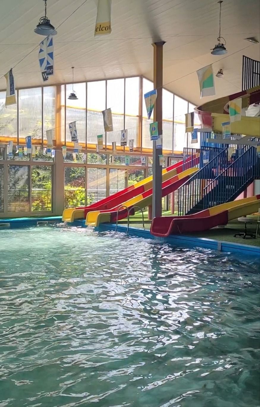 실내 수영장 미끄럼틀많아 아이들이좋아했습니다.