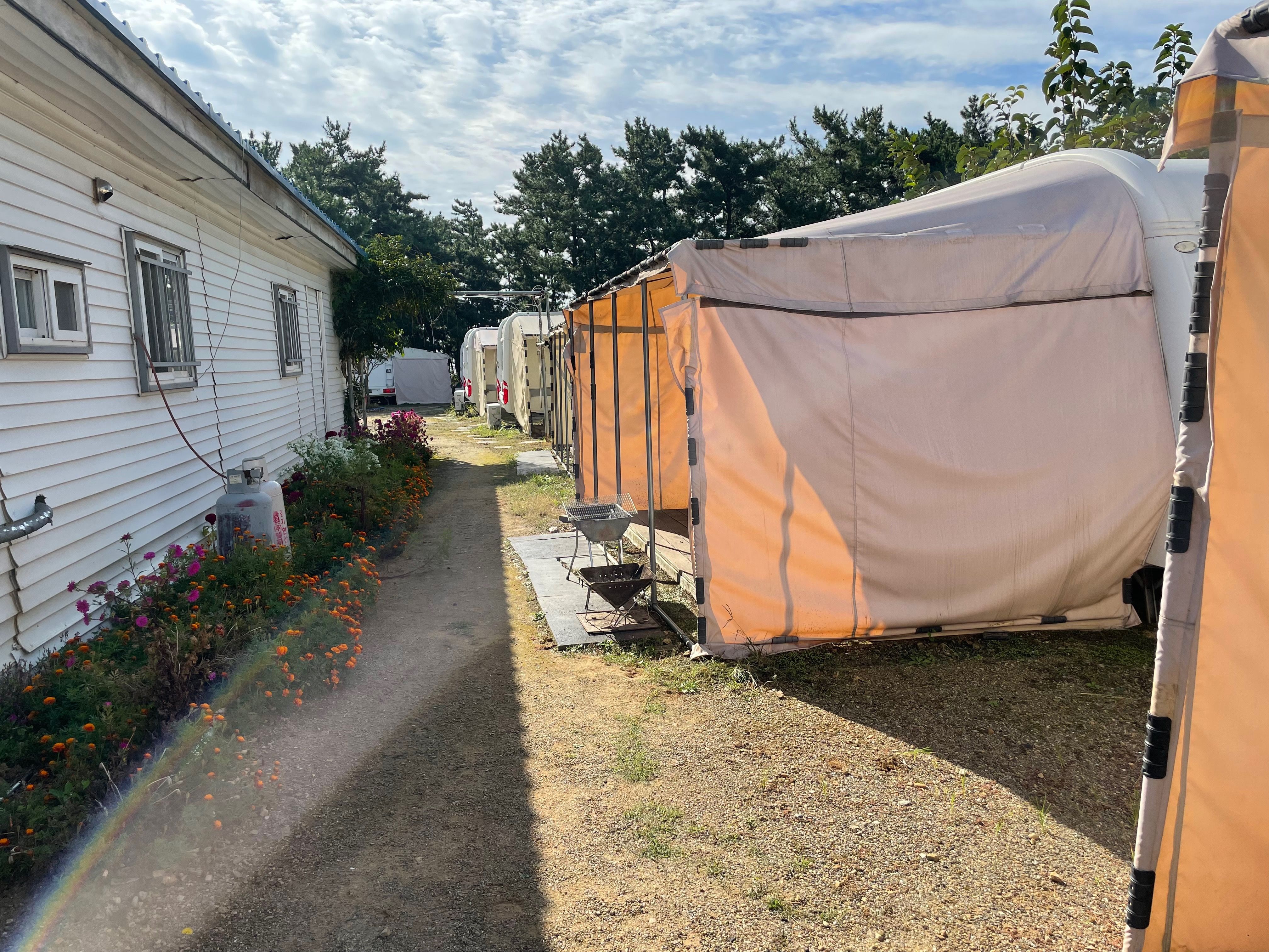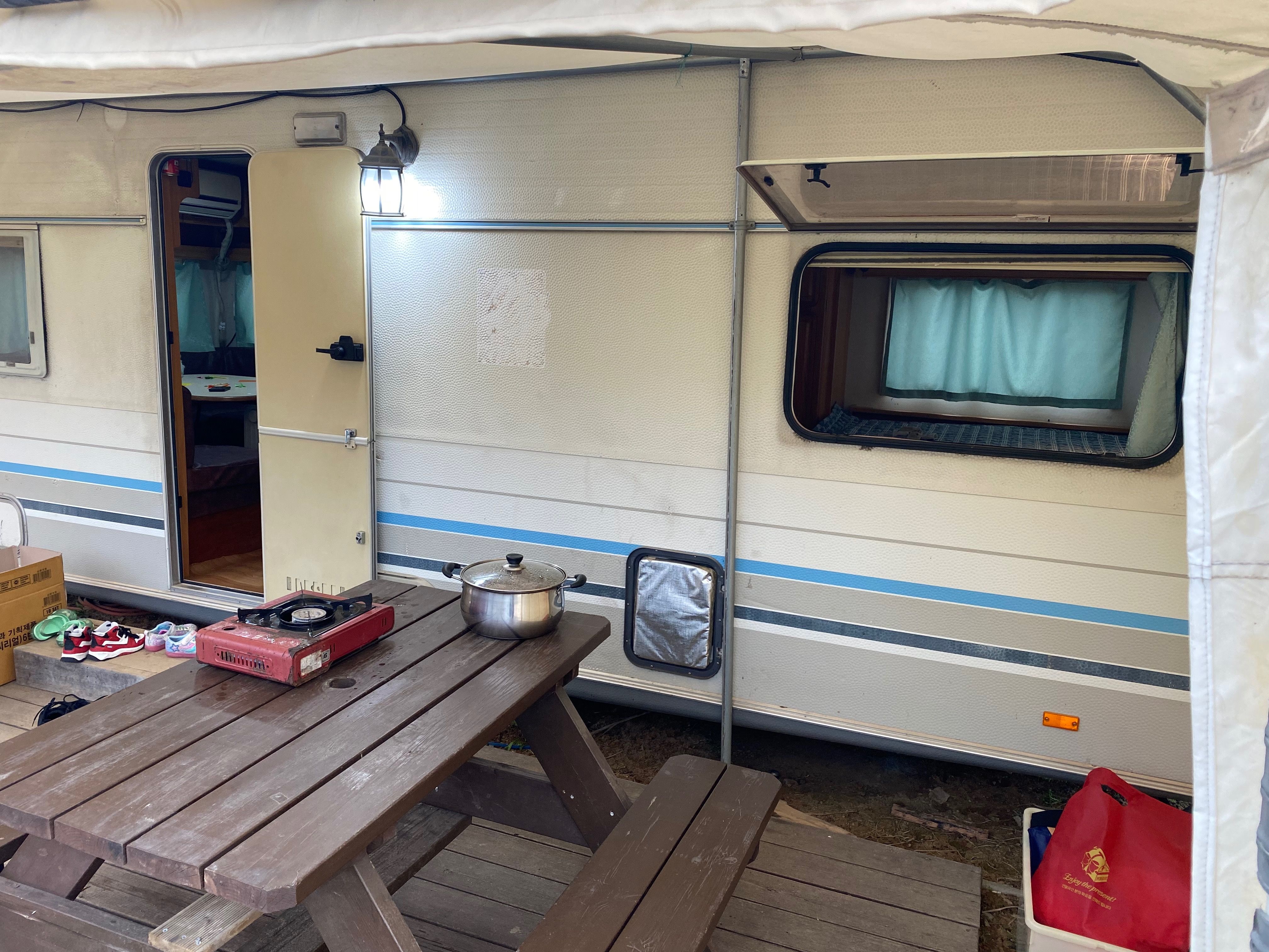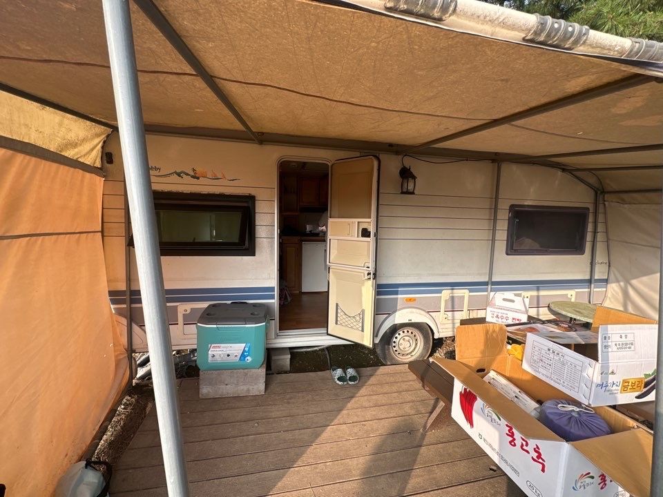 리뷰보고 걱정했으나.. 나이 있으신 사장님들 친절하시고 조용히 쉬다오기 좋으며, 카라반 연식이 있을뿐~ 물 잘나오고 고기구워먹기 좋고~ 생각보다 벌래가 정말 없어 놀랐습니다. 모기 딱 한마리 만나고 파리 한마리.. 이불은 간편한걸로 따로 챙겨가신다면 좋을것 같아요~ 공용화장실 쏘쏘하고 샤워장 군대처럼 맘에들고~ 다시 갈래? 라고 물어본다면 가격경쟁력 있음, 가자~ 할듯, 여튼 새것같은 카라반, 진짜 깔끔한거 원한다면 비추~ 마지막으로 바로옆에 몇걸음 나가면 바다임, 밤에는 갯뻘