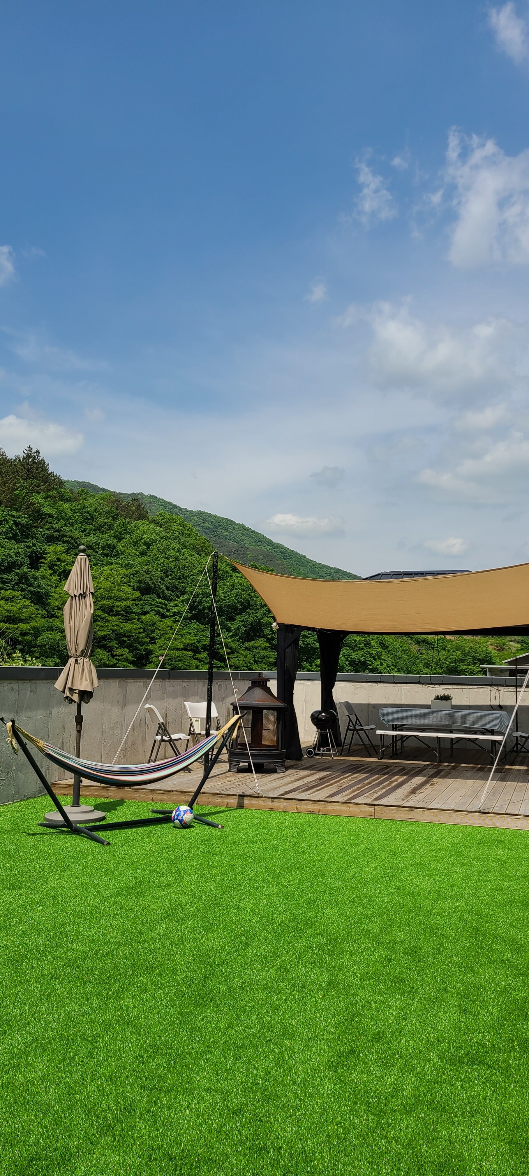 절로 나오는데 펜션 마당 공간도 이렇게 멋지다니...