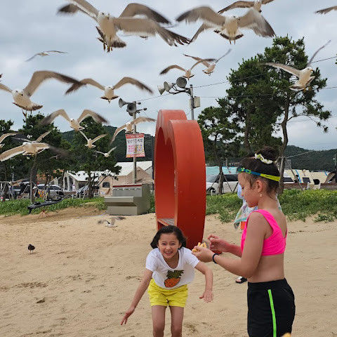 밤에는 화려한 폭죽놀이 많이들 하시고, 새벽부터 갈매기 미친 듯이 울어대서 저는 밤잠 설쳤습니다… 바닷가 옆 어느 캠핑장이든 다 이럴테지만 참고하세요^ㅠ^