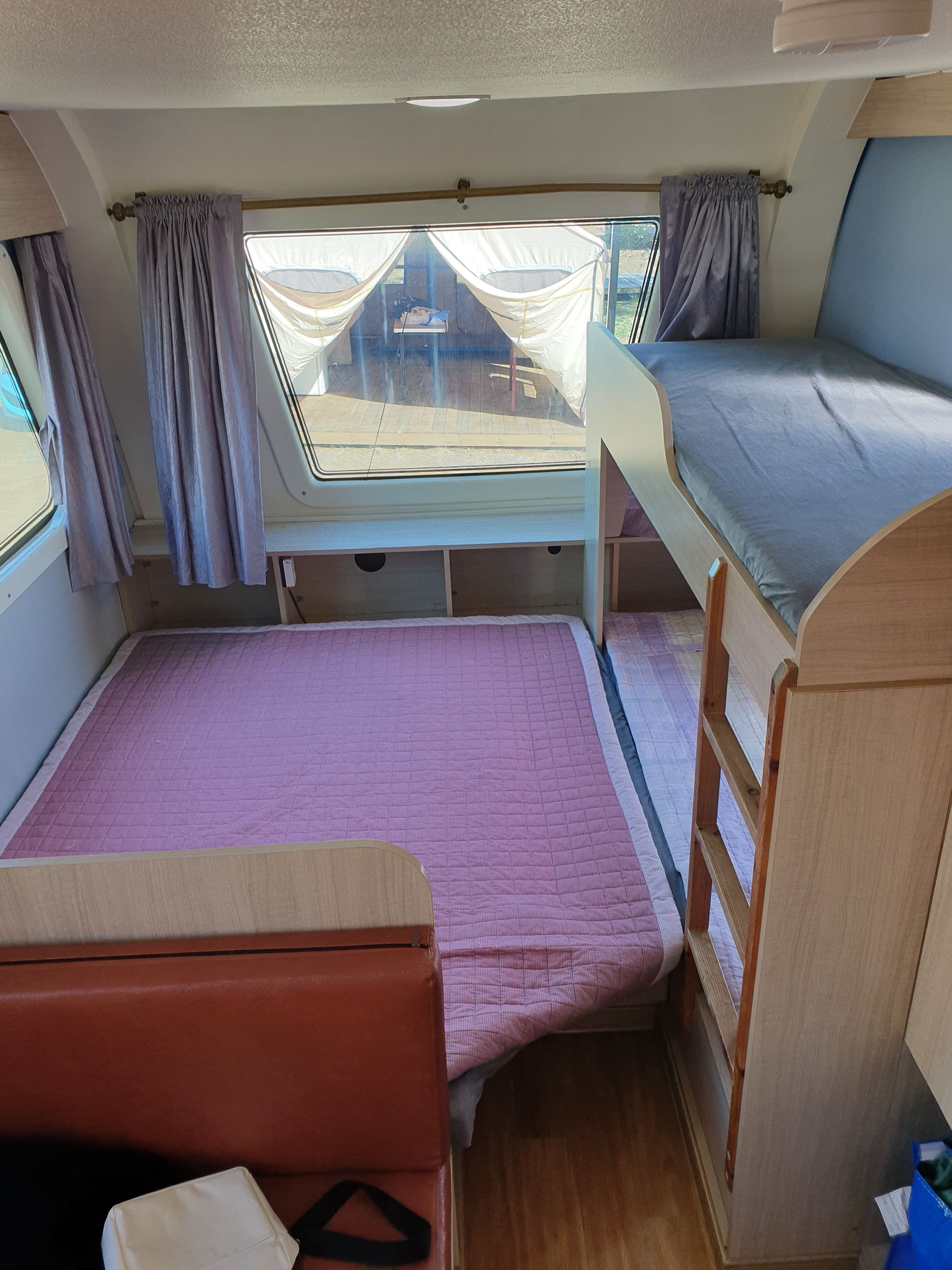 카라반. 이불. 안의 시설 모두 낡고 깨끗하진 않았습니다.