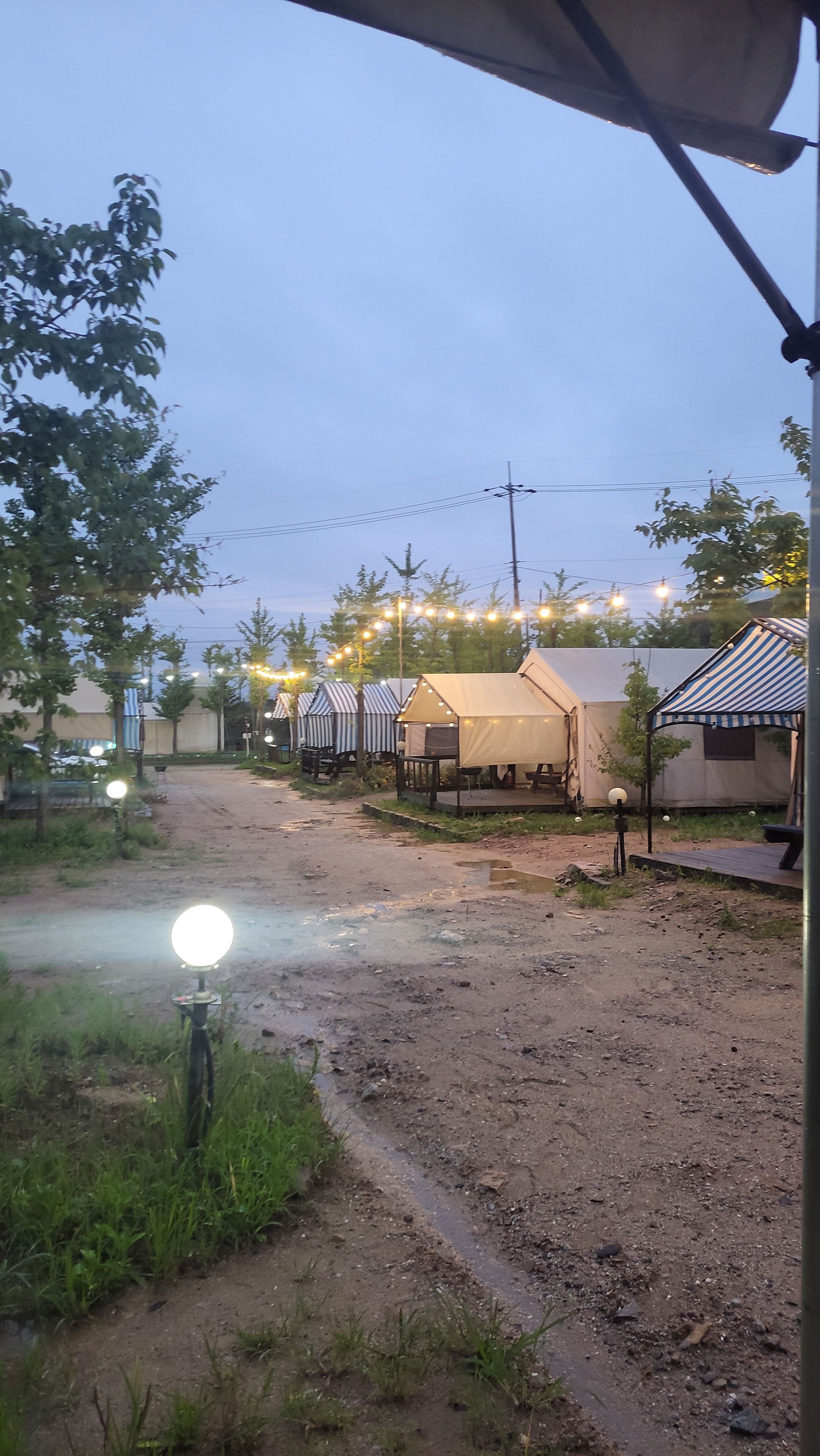 글램핑장 여러군데 다녔지만 솔직히 가장 안좋았습니다. 앞에 있는 화장실중에 한칸있는 여자화장실은 잠금장치마저 고장나있고, 변기옆에 샤워기 하나 꽂여있는데 따뜻한 물은 나오지도 않고, 문고리가 고장나있어 씻지도 못합니다. 옆에 있는 설거지하는 곳에서 애들 발닦고 이닦고 다 합니다. 저녁에 추울까봐 깔려있는 전기장판을 켜려하니 코드꼽는 곳도 없고 멀티탭선은 닿지도 않습니다. 리뷰에서 봤던 토끼, 양들은 어디있는지 물어보니 이젠 없다고 하시고. 아이는 실망이 이만저만 아니었어요. 우중캠프가 되버려서 텐트에 있는게 다였는데, 공동 전자렌지는 저렇게 비맞으며 위험하게 전기용품을 사용해야하는 위치에 있습니다. 옆캠프는 새벽4,5시까지 전주듣고 노래맞추기 게임을 하고 있고. 샤워실에도 화장실에도 방에도 거울은 없습니다.