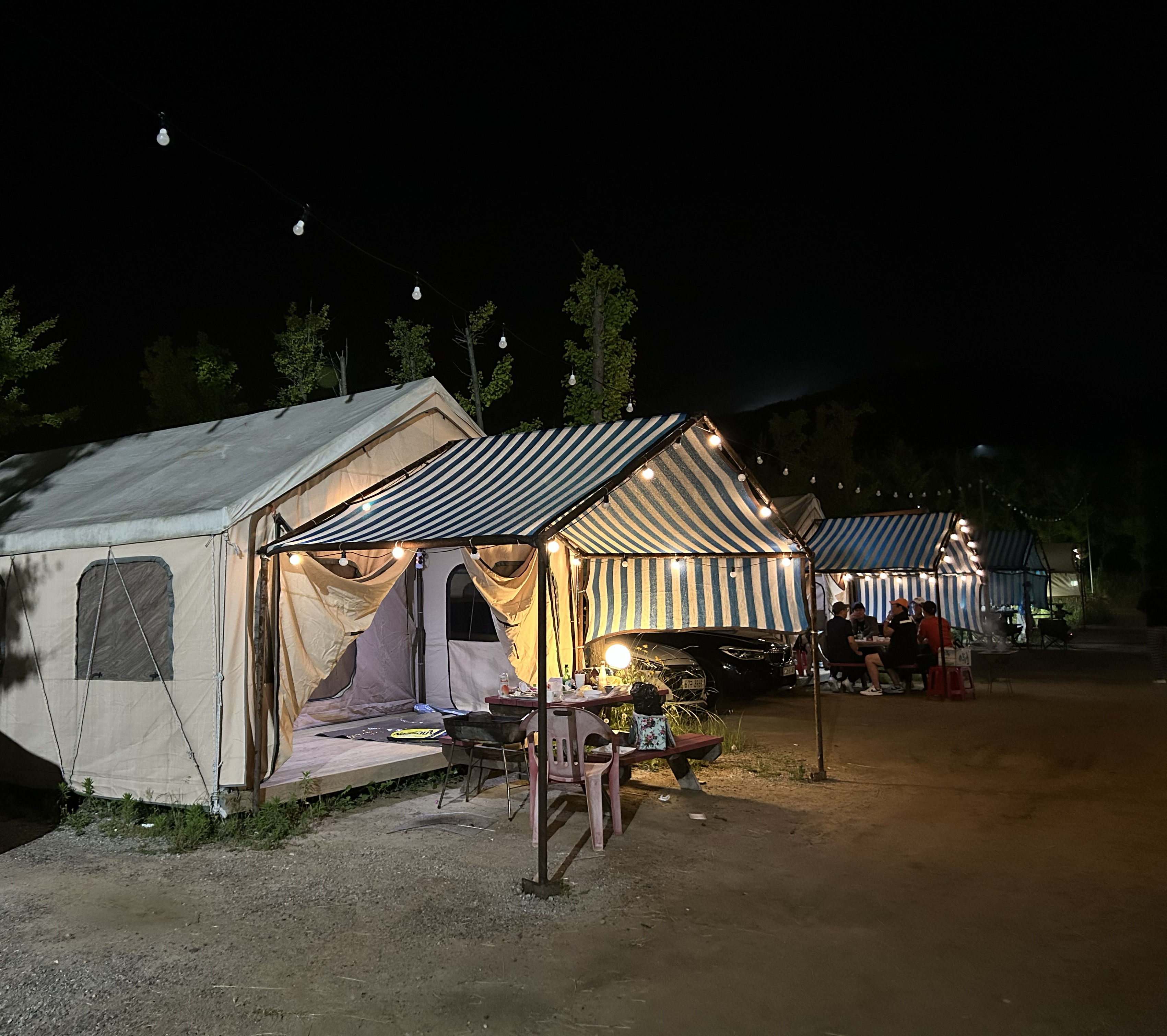카라반으로 예약했는데, 전화로 글램핑으로 바꿨습니다. 차액 3만원 현장에서 이체해 입실했습니다.