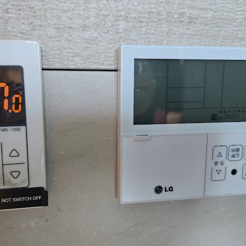 왼쪽은 보일러, 오른쪽은 에어컨입니다.