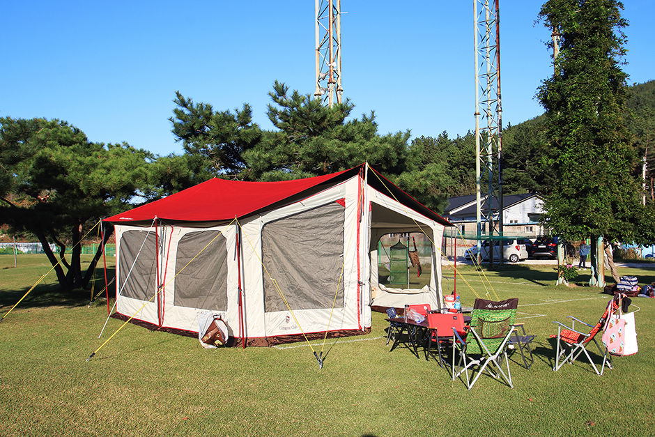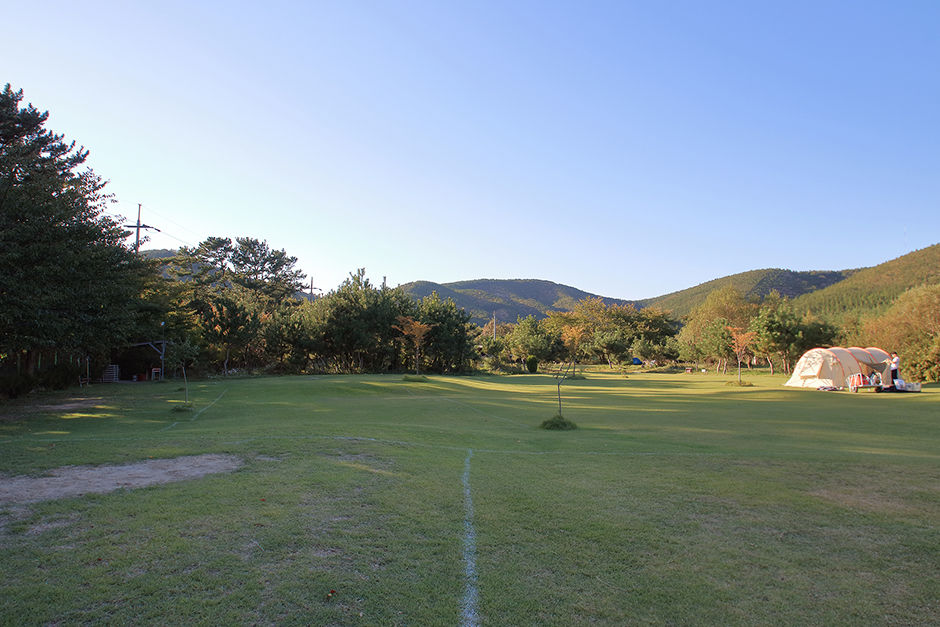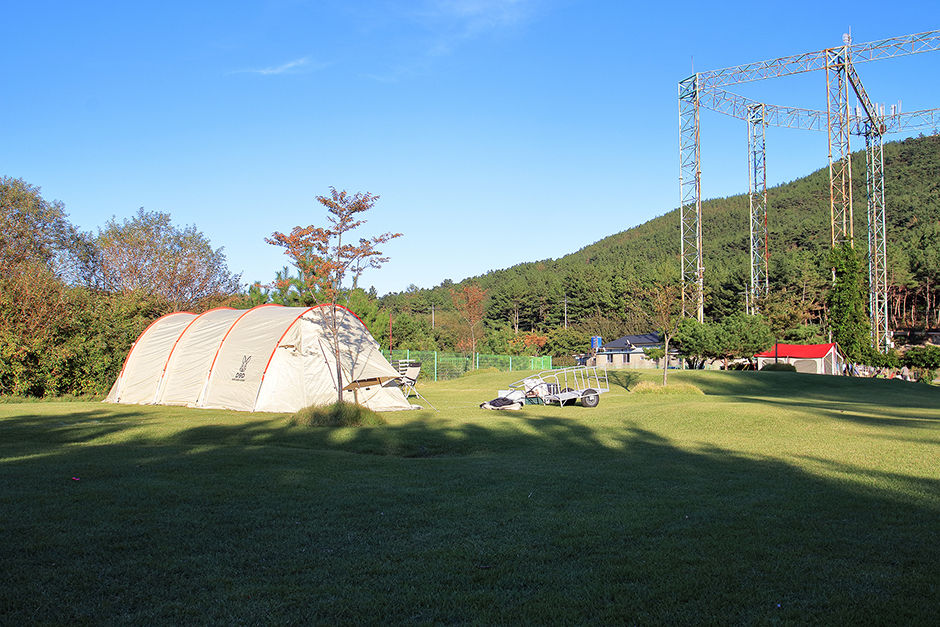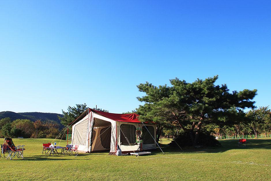 경북 포항 칠포해수욕장 근처, 넓고 푸른 잔디밭 사이트가 특징인 칠포오토캠핑장이다. 원래 골프장이었다고 하니 그 특유의 탁 트인 초록색이 눈에 먼저 들어온다. 아이들을 위한 야외물놀이장과 자연생태학습장이 있다. 주변 곤륜산 암각화 트레킹과 해변 어촌마을에서 바다 낚시를 체험할 수 있다.