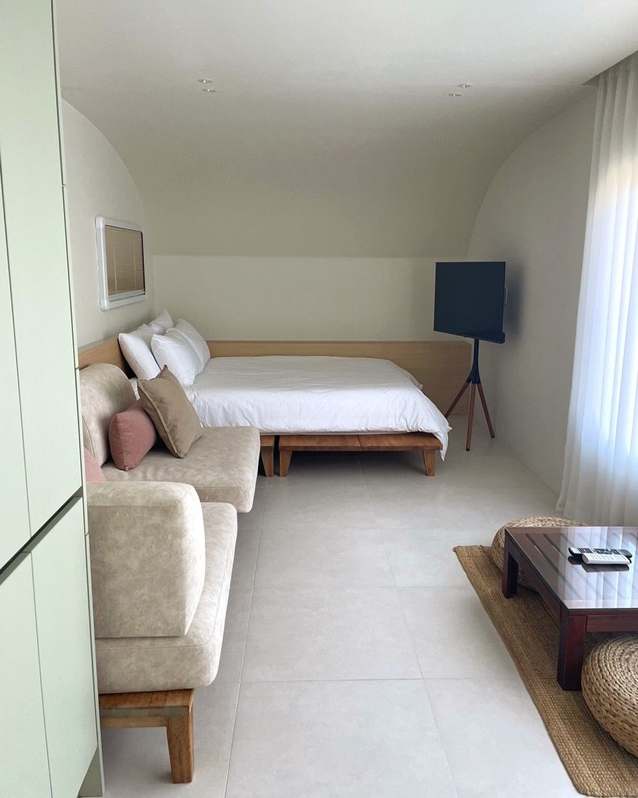 리뷰에 춥다는말이 있어서 걱정했었는데 저희는 더워서 창문열고 잘만큼 너무 따땃하게 잘 잤네요 ㅎㅎ 사장님도 너무 친절하시고, 깔끔하고 인테리어도 이뻐서 sns용 사진찍기 너무 좋아요 ㅎㅎ 💜