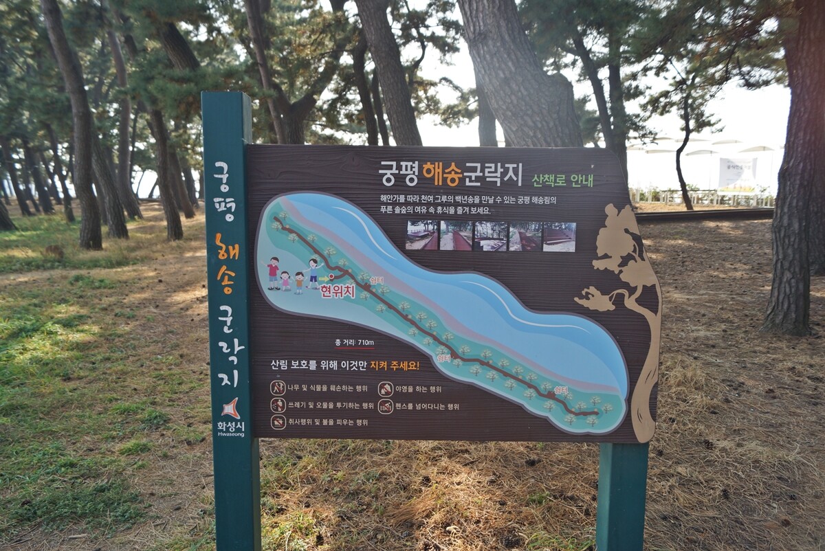 시원한 바닷바람이 실어 오는 솔향을 맡으면서 700m 구간의 산책로를 걸을 수 있는 해송 군락지이다. 썰물 때 드러나는 약 2km 개펄은 자연학습장으로 이용되고 하루 2시간가량 밀물 때는 해수욕을 즐길 수 있다. 인근 궁평항은 화성 8경 중 4경으로 낙조가 유명하다.