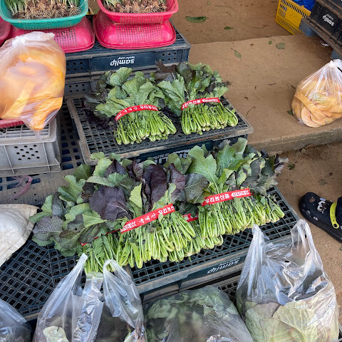 너무 고마운 장소입니다. 할머니들이 직접 농사지은 야채들을 판매하시는 곳입니다 . 야채들이 공장에서 생산된 것처럼 일정하지 않지만 직접 뜯어오신 나물이라는 걸 알 수 있어요. 가격도 저렴해요
