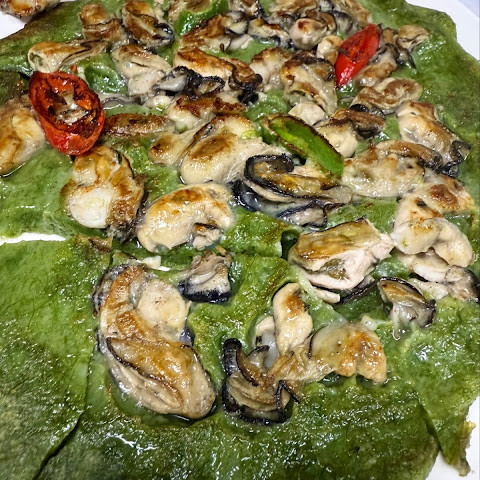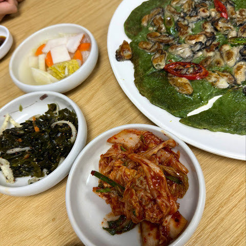 여기의 명물인 굴전은 정말 신선하고 맛있습니다. 굴전은 처음 먹어봤습니다.