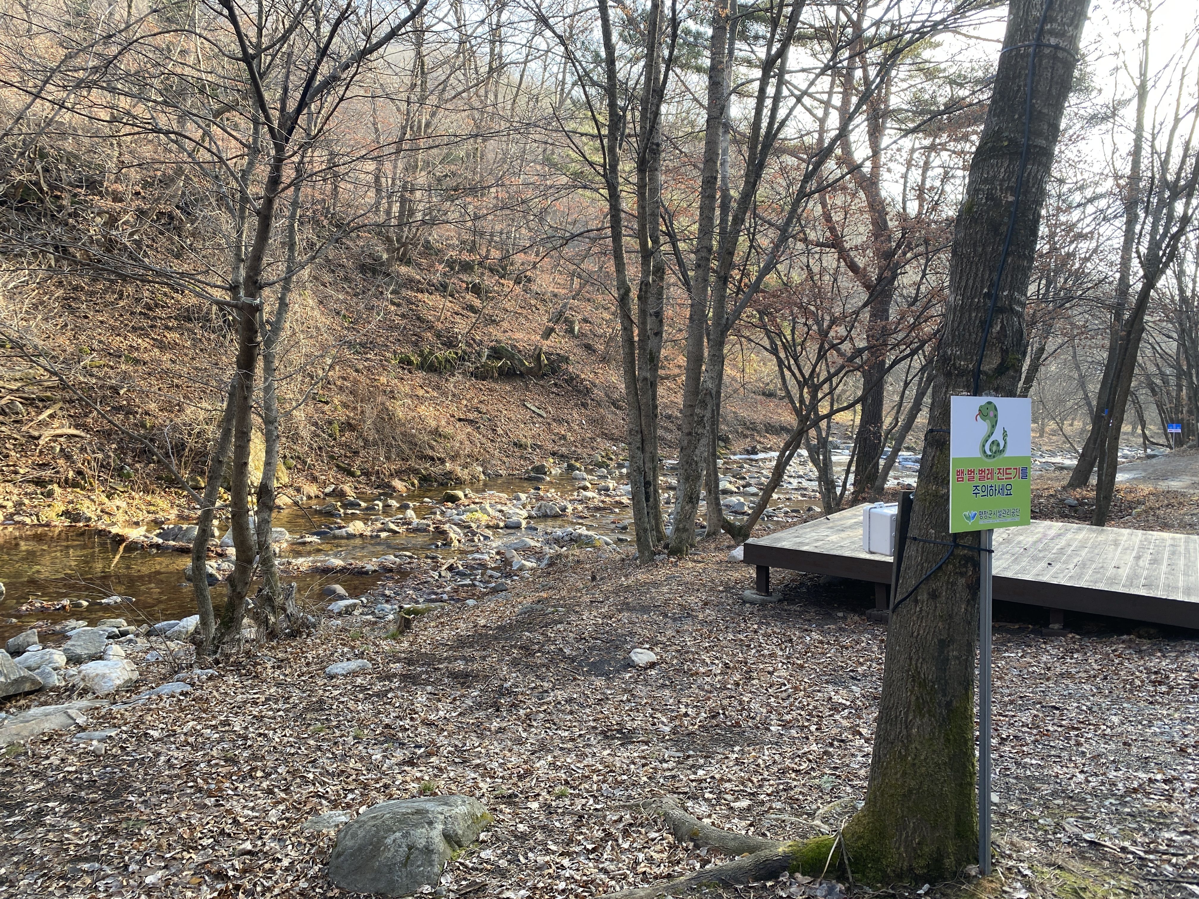사이트가 넓어서 텐트 2동을 설치하고도 여유로왔습니다. 계방산 등산로와 연결되어 있어 다음날 등산하기도 좋습니다. 계곡도 있어서 여름에는 물놀이 하기도 좋을 것 같아요. 토요일에 이용했는데 겨울이라 그런가 한적하고 좋았습니다.