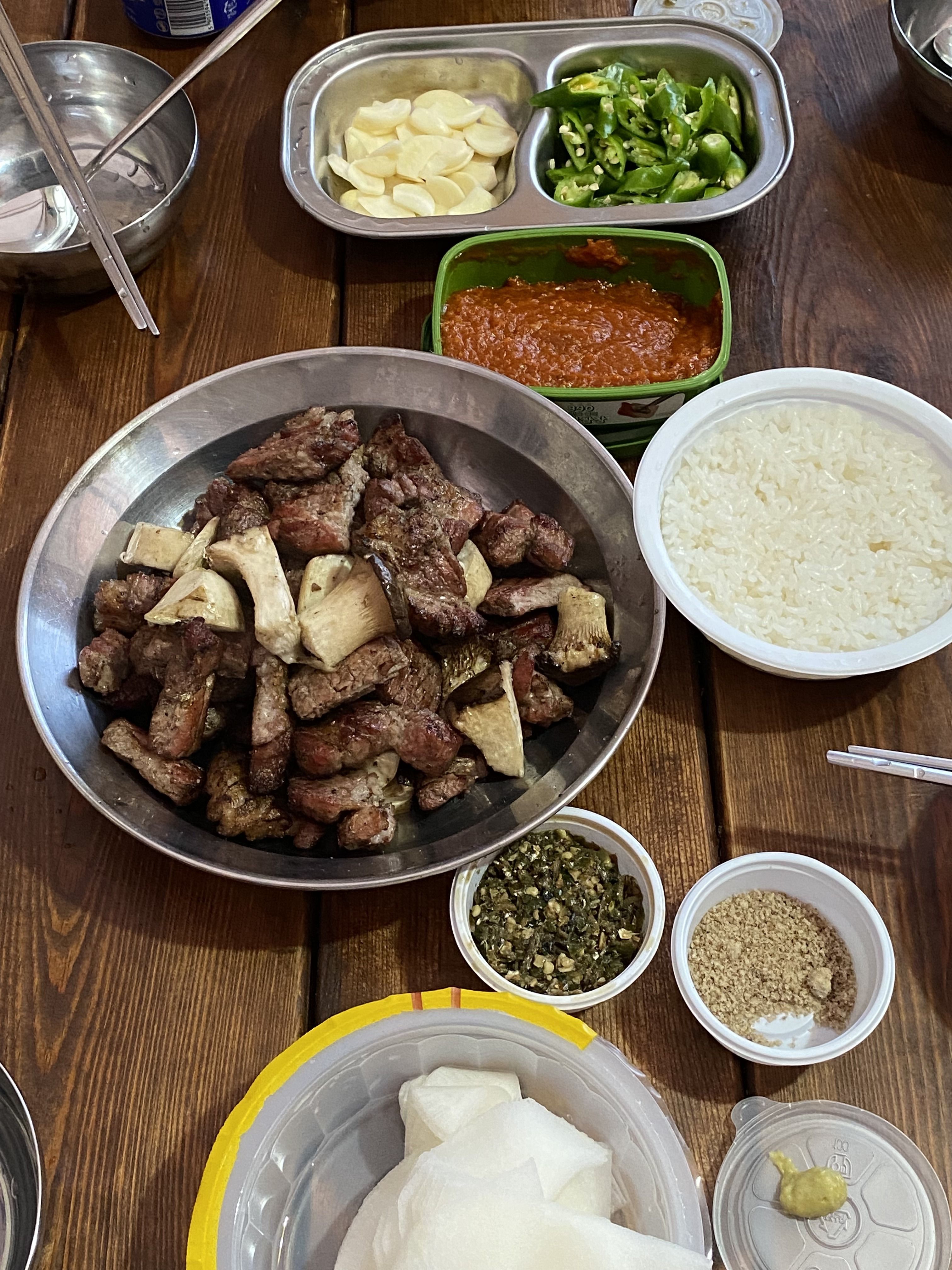 2. 바베큐 이용시 공용주방이라는점 (수저 접시 없음)숯불과 그릴 제공되고 개별적으로 불 지피셔야 하니 참고하시기 바랍니다.