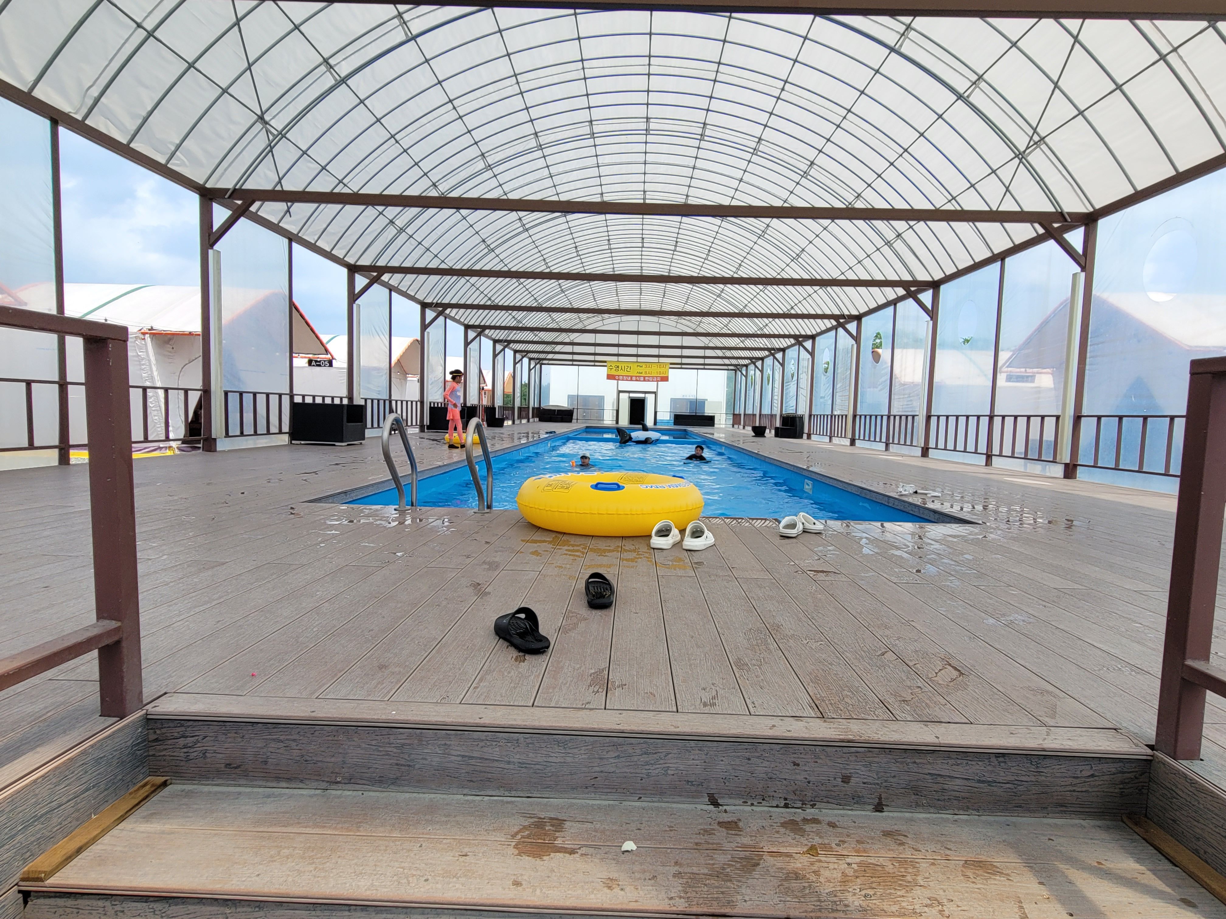 하지만 물놀이 하기엔 참 좋았습니다 수영장도 실내, 실외 여러군데 크게 분포되어 있어 사람들 방해 받지 않고 잘 놀 수 있었어요 아 샤워장도 있어요 냄새가 심해서 못 썼지만요!