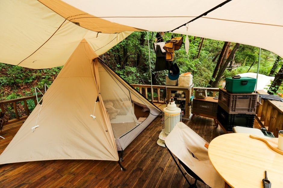 강원도 영월 무릉도원면 법흥계곡에 있는 영월캠프는 계곡과 가까운 계곡데크와 숲속 느낌 물씬 나는 숲속데크로 나눠져있다. 인조잔디구장은 아이들이 뛰어놀기 좋다. 캠핑장 규모가 아주 크지는 않아서 조용히 캠핑 즐기기에 최적인 곳이다.