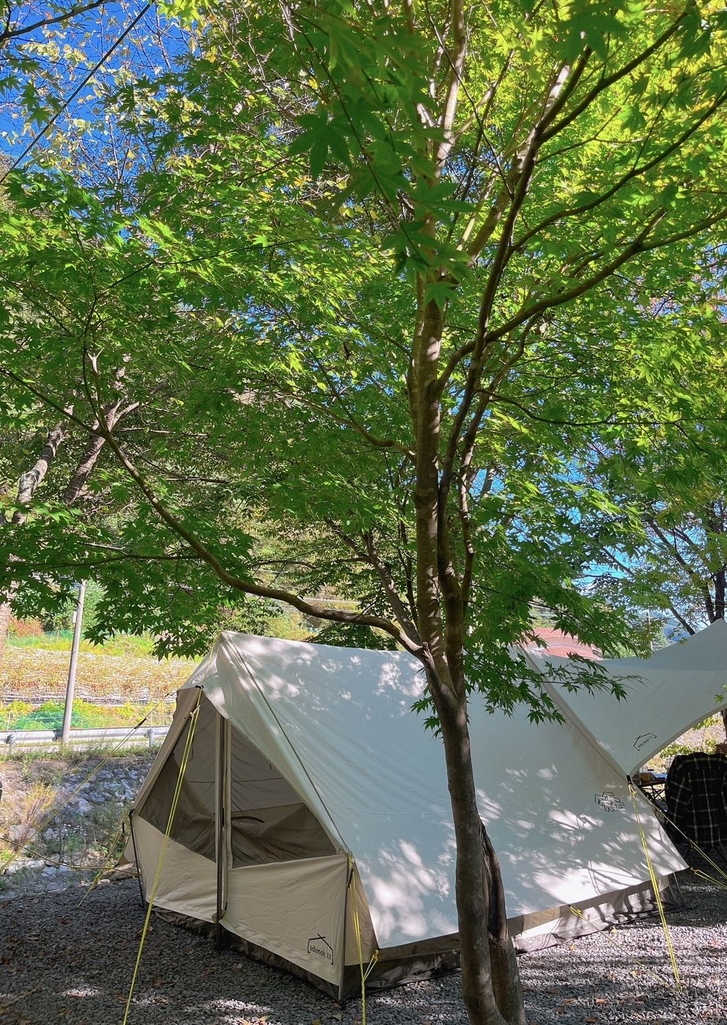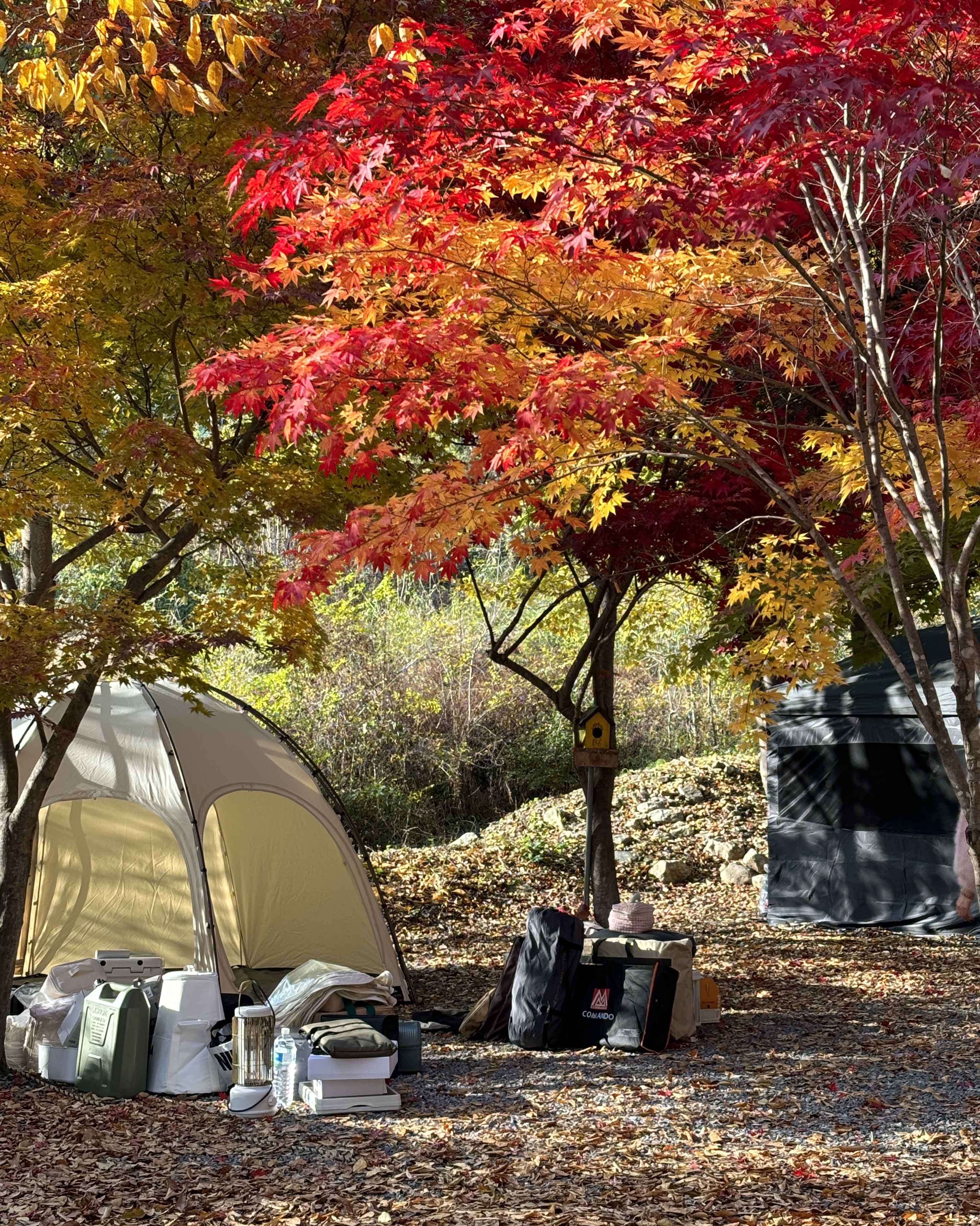 캠지기분들께서 너무 친절하게 맞아주셨고 화장실 및 개수대 깔끔하게 관리되고 있는 점, 바로 옆 도로길이지만 전혀 시끄럽지 않은 점, 아이들을 위한 작은 놀이터도 있었고 수 많은 단풍나무 덕분에 낮이고 밤이고 행복..