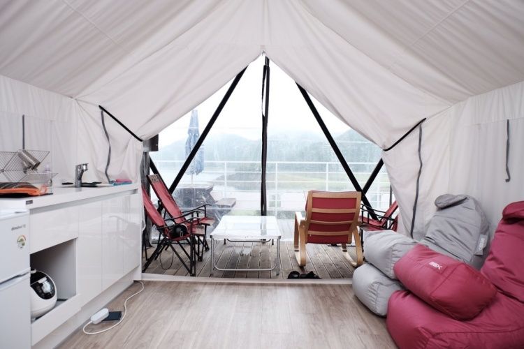 충주호의 풍경이 한눈에 들어오는 럭셔리 글램핑장이다. 캠핑장 진입하는 도로는 봄에는 벚꽃놀이와 가을 단풍구경하기에도 좋다. 충주호를 뒤로 내려다보며 캠핑장 내 수영장에서 물놀이를 즐길 수 있으며, 라운지와 조식 서비스를 이용할 수 있다.