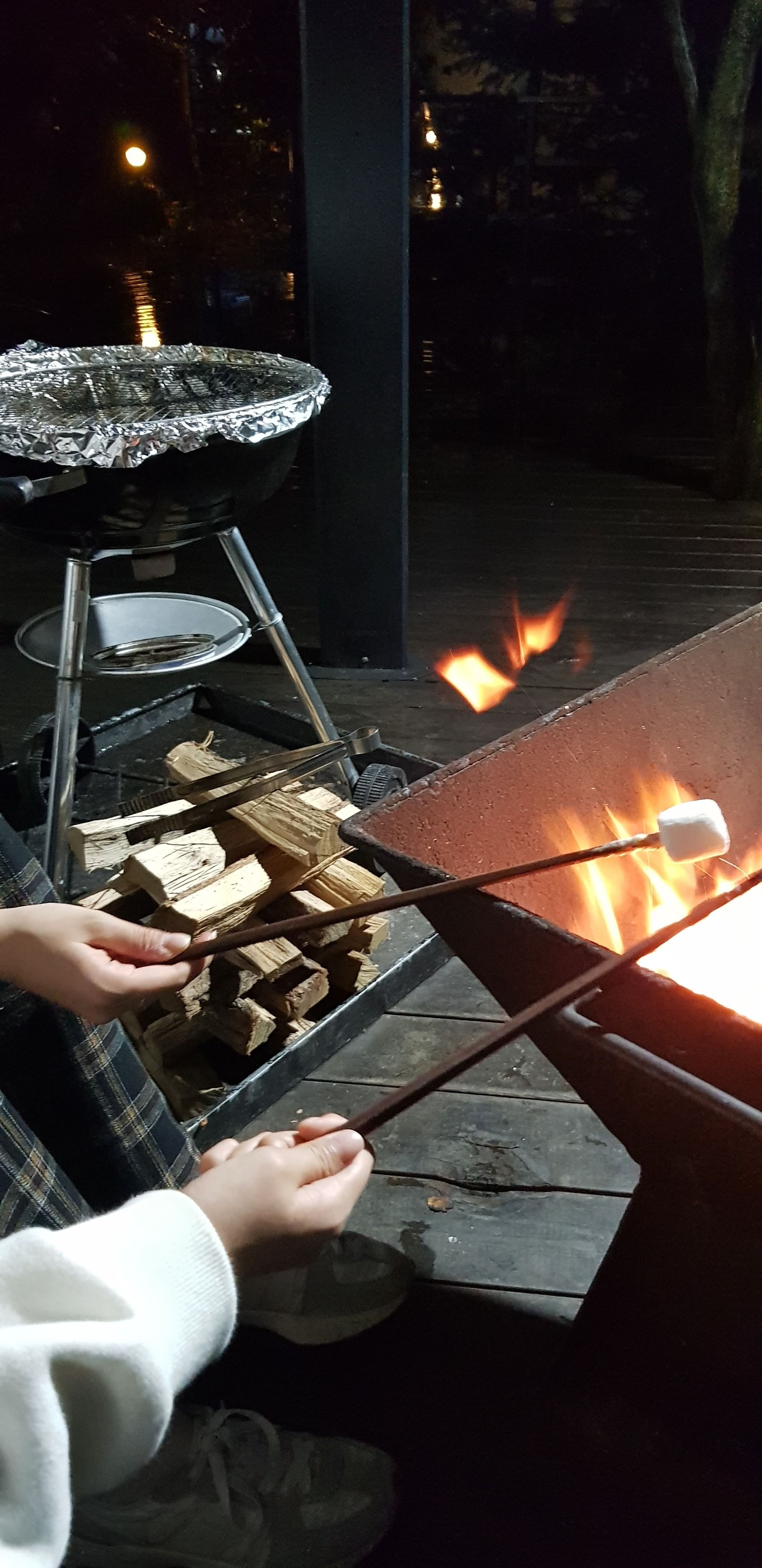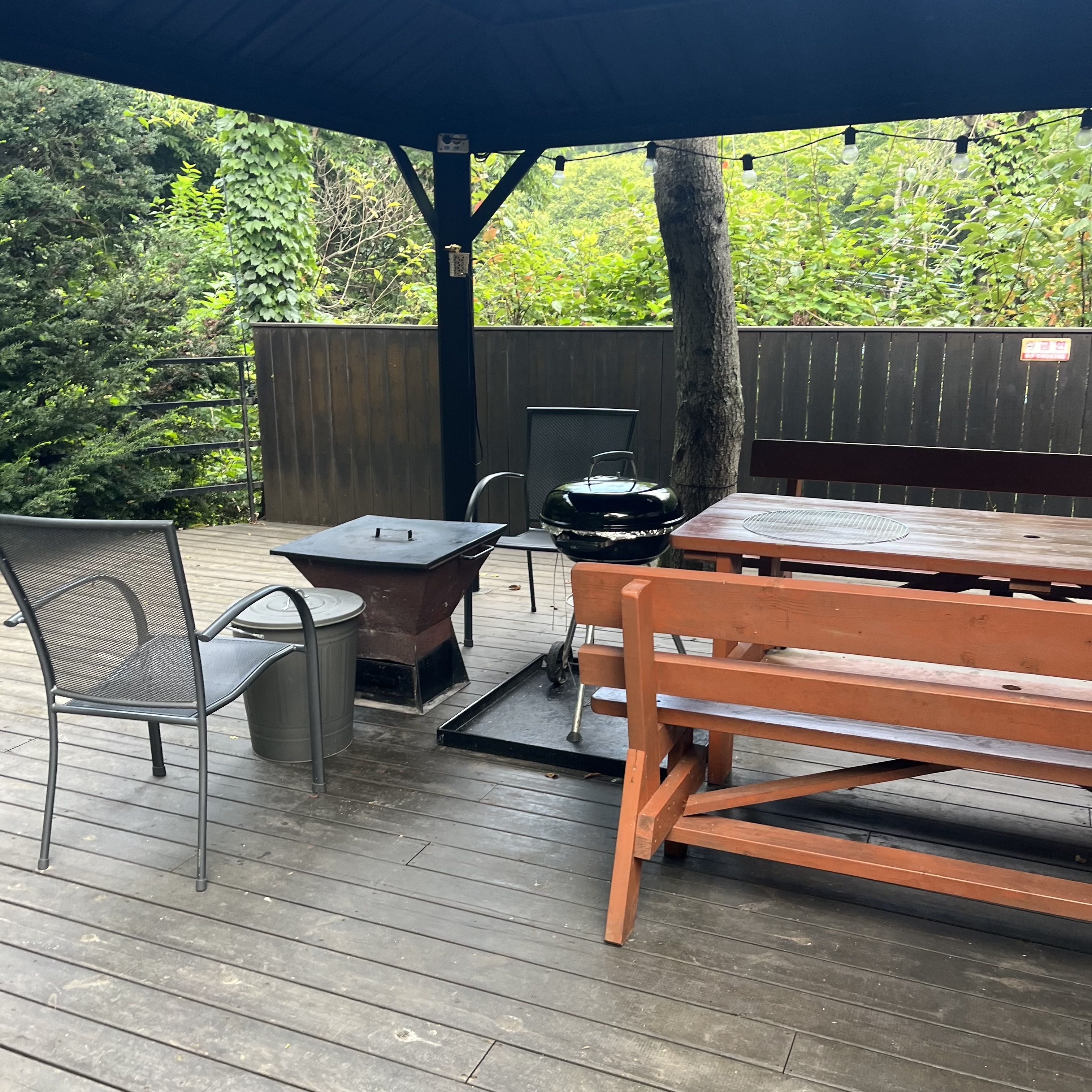 각 숙소마다 데크, 야외 지붕이 있어서 밖에서 요리하기 너무 좋고, 안에 인덕션도 있어 편리했어요!