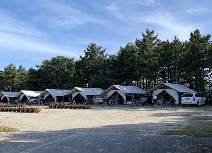 양양 톨게이트 근처에 위치한 지경국민여가캠핑장은 접근성이 좋다. 캠핑장 안에는 오토캠핑을 즐길 수 있는 데크와 카라반, 글램핑 텐트가 준비되어 있다. 지경해수욕장 바로 옆이라 해수욕장과 캠핑을 함께 즐길 수 있다.