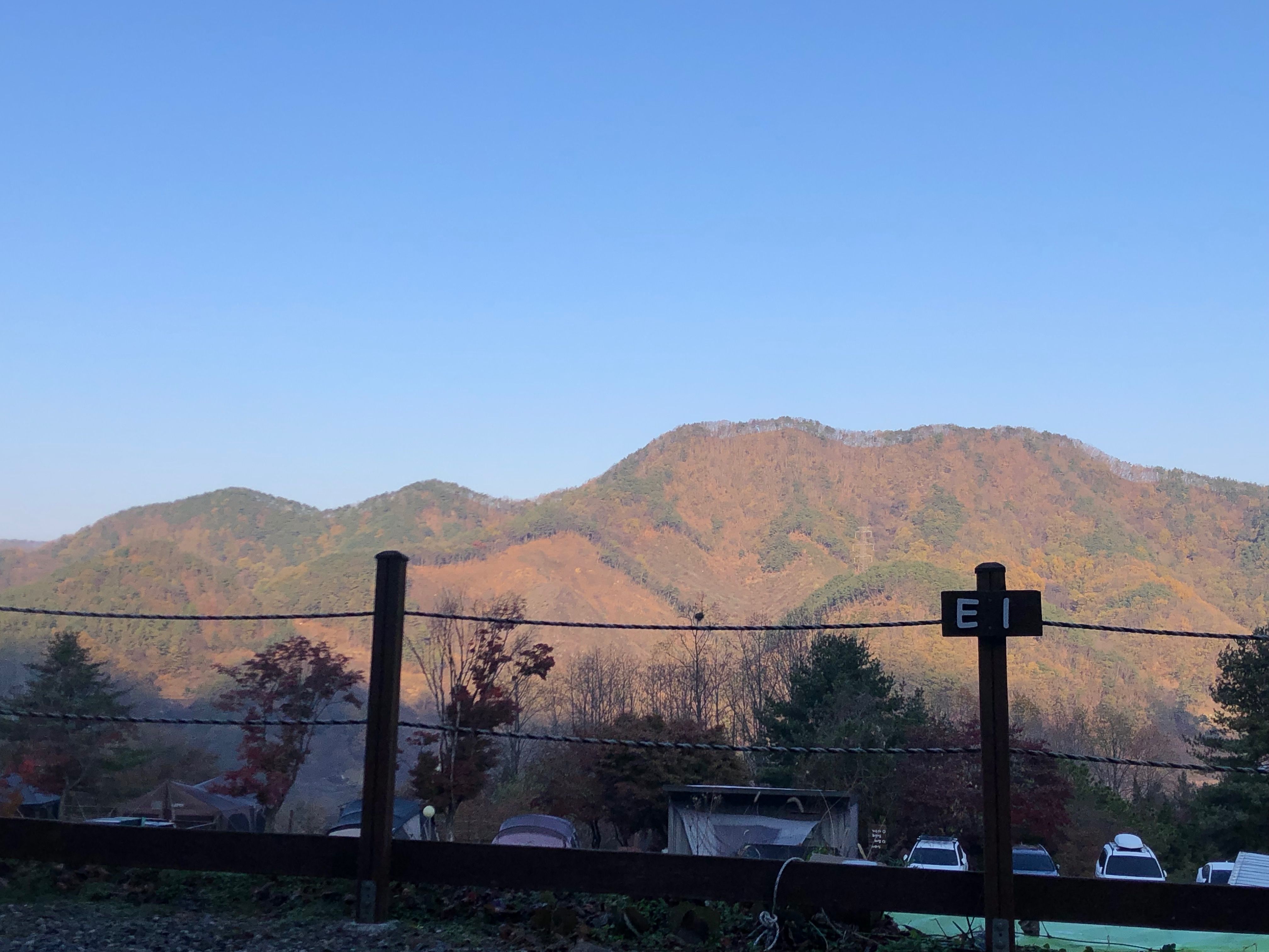 E사이트는 약간 높은 지대에 위치하여 전체적으로 뷰가 상당히 좋았고, 그 중에서도 6, 7번 자리는 제일 가장 자리이기에 옆 동과 분리된 점이 프라이빗하고 좋았습니다. 다만 공용시설과는 떨어진 곳에 위치하기에 화장실, 개수대 이용에 약간의 불편함은 있습니다.
