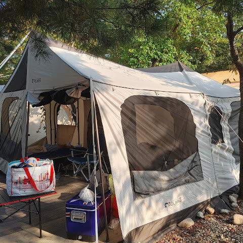 개수시설, 화장실, 샤워장 캠핑장 중에 원탑, 캠핑사이트 넓음, 가까운 거리에 편의점 있고 물놀이 수심 얕아서 놀기좋음